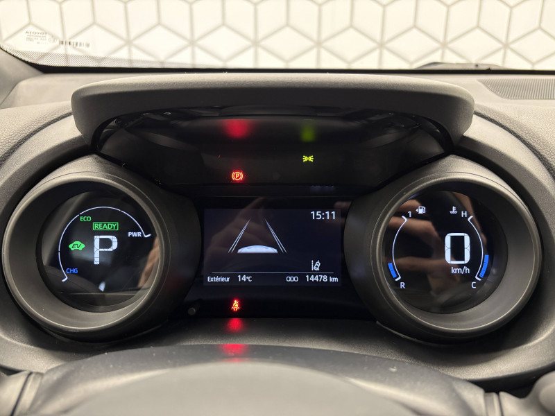6 HP / Antenne de toit type requin / Clignotants LED séquentiels / Double plancher du coffre / Ecran couleur tactile multifonction 9" / Ecran TFT 4,2" / Feux Full LED (AV/AR) / Jantes alliage 17" (5 doubles-branches) / Rails de toit noir / Rétroviseur intérieur électrochromatique / Sellerie tissu gris / Système d'appel d'urgence automatique "E-Call" / Système d'ouverture/fermeture et démarrage sans clé "Smart Entry & Start" / Système multimédia Toyota Smart Connect : écran tactile 9", navigation connectée et contrôle à distance via l'application MyT (verrouiller/déverrouiller, relancer la climatisation et retrouver ma voiture avec allumage des feux clignotants) et 4 ans de mises à jour cartographiques et de services connectés inclus / Toyota Safety Sense