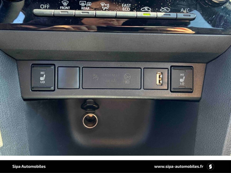 6 HP / Antenne de toit type requin / Clignotants LED séquentiels / Double plancher du coffre / Ecran couleur tactile multifonction 9" / Ecran TFT 4,2" / Feux Full LED (AV/AR) / Jantes alliage 17" (5 doubles-branches) / Rails de toit noir / Rétroviseur intérieur électrochromatique / Sellerie tissu gris / Système d'appel d'urgence automatique "E-Call" / Système d'ouverture/fermeture et démarrage sans clé "Smart Entry & Start" / Système multimédia Toyota Smart Connect : écran tactile 9", navigation connectée et contrôle à distance via l'application MyT (verrouiller/déverrouiller, relancer la climatisation et retrouver ma voiture avec allumage des feux clignotants) et 4 ans de mises à jour cartographiques et de services connectés inclus / Toyota Safety Sense