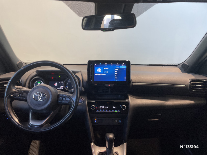 Système d'appel d'urgence automatique "E-Call" / Système d'ouverture/fermeture et démarrage sans clé "Smart Entry & Start" / Système multimédia Toyota Smart Connect : écran tactile 9", navigation connectée et contrôle à distance via l'application MyT (verrouiller/déverrouiller, climatisation et retrouver ma voiture avec allumage des feux clignotants) / Sellerie tissu gris / Antenne de toit type requin / Clignotants LED séquentiels / Double plancher du coffre / Ecran couleur tactile multifonction 9" / Ecran TFT 4,2" / Feux AV/AR avec signature lumineuse Full LED / Feux de route adaptatifs / Feux de route automatiques / Feux Full LED (AV/AR) / Jantes alliage 17" (5 doubles-branches) / Peinture Blanc Pur / Rails de toit / Rails de toit noir / Rétroviseur intérieur électrochromatique / Système multimédia Toyota Smart Connect : écran tactile 9", navigation connectée et contrôle à distance via l'application MyT (verrouiller/déverrouiller, relancer la climatisation et retrouver ma voiture avec allumage des feux clignotants) et 4 ans de mises à jour cartographiques et de services connectés inclus / 6 HP / Toyota Safety Sense / Toyota Safety Sense Système de sécurité précollision avec détection des véhicules, piétons et cyclistes, actif également dans les intersections. Alerte de franchissement de ligne avec aide au maintien dans la file, assistant de trajectoire et détecteur de fatigue, Lecture des panneaux de signalisation avec limiteur de vitesse, Gestion automatique des feux de route, Régulateur de vitesse adaptatif intelligent