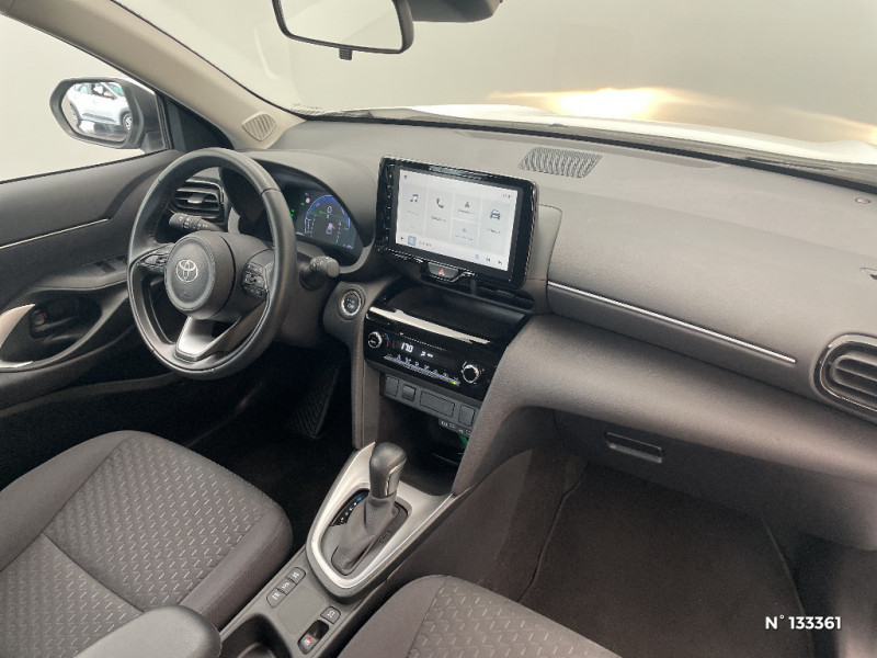Feux AV halogènes / Lampe de plafonnier AR / Rétroviseur intérieur électrochromatique / Sellerie tissu gris foncé / Services connectés standards MyToyota (inclus 10 ans) / Système audio Toyota Touch 3 écran tactile 9", radio digitale (DAB), Bluetooth / Système d'appel d'urgence automatique "E-Call" / Système d'ouverture/fermeture et démarrage sans clé "Smart Entry & Start" / Toyota T-MATE / Toyota Safety Sense 3 Système de sécurité précollision avec détection des véhicules, piétons et cyclistes, actif également dans les intersections. Alerte de franchissement de ligne avec aide au maintien dans la file, assistant de trajectoire et détecteur de fatigue, Lecture des panneaux de signalisation avec limiteur de vitesse, Gestion automatique des feux de route, Régulateur de vitesse adaptatif intelligent, Système d'arrêt d'urgence autonome , Système d'assistance à la conduite proactive / 6 HP / Antenne de toit type requin / Assistant visuel de conduite (DMC) / Boîte automatique à variation continue / Carrosserie monoton / Ciel de toit gris / Connectivité smartphone Apple CarPlay et Android Auto sans fil / Contrôle de traction (TCS) / Double plancher du coffre / Ecran TFT 7" / Enjoliveurs 16"