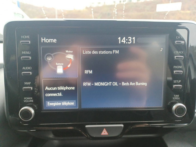 6 HP / Antenne de toit type requin / Carrosserie monoton / Ciel de toit gris / Connectivité smartphone Apple CarPlay et Android Auto sans fil / Double plancher du coffre / Ecran TFT 7" / Enjoliveurs 16" / Feux AV halogènes / Lampe de plafonnier AR / Sellerie tissu gris foncé / Services connectés standards MyToyota (inclus 10 ans) / Système audio Toyota Touch 3 écran tactile 9", radio digitale (DAB), Bluetooth / Système d'appel d'urgence automatique "E-Call" / Système d'ouverture/fermeture et démarrage sans clé "Smart Entry & Start" / Toyota T-MATE / Toyota Safety Sense 3 Système de sécurité précollision avec détection des véhicules, piétons et cyclistes, actif également dans les intersections. Alerte de franchissement de ligne avec aide au maintien dans la file, assistant de trajectoire et détecteur de fatigue, Lecture des panneaux de signalisation avec limiteur de vitesse, Gestion automatique des feux de route, Régulateur de vitesse adaptatif intelligent, Système d'arrêt d'urgence autonome , Système d'assistance à la conduite proactive