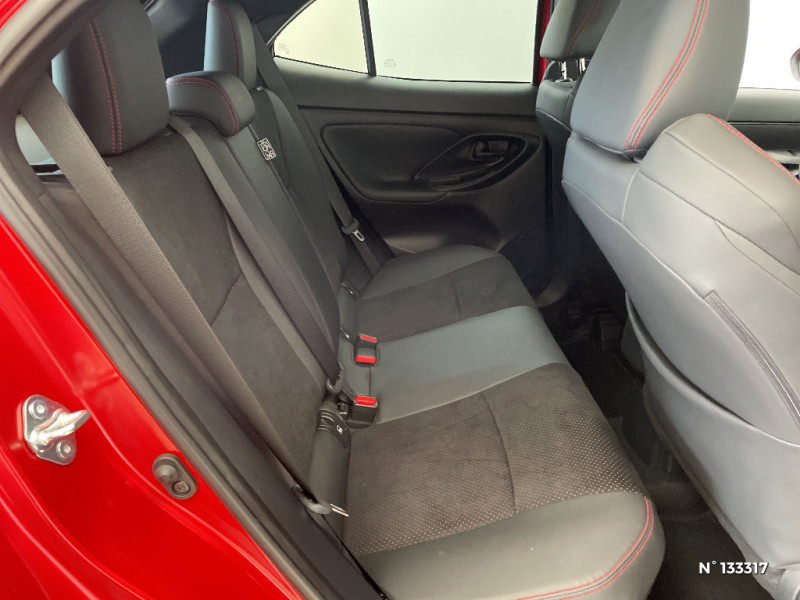 Rétroviseur intérieur électrochromatique / Sellerie en suédine noire perforée rouge et revêtement Premium / Services connectés de contrôle à distance MyToyota (inclus 4 ans) / Antenne de toit type requin / Assistant visuel de conduite (DMC) / Attaches de coffre / Badge "GR SPORT" AV/AR / Boîte automatique à variation continue / Carrosserie bi-ton / Centre de gravité rabaissé et suspensions raffermie / Ciel de toit noir / Clé digitale / Clé GR SPORT / Clignotants AR LED séquentiels / Connectivité smartphone Apple CarPlay et Android Auto sans fil / Contrôle de traction (TCS) / Diffuseur AR GR SPORT / Double plancher du coffre modulable / Eclairage d'ambiance intérieur / Ecran TFT 12.3" / Ecrous antivol / Feux Full LED (AV/AR) / Grille de calandre et de parechocs AV en nid d'abeille / Lampe de plafonnier AR / Pare-brise chauffant (sous les essuie-glaces uniquement) / Pédalier en aluminium / Poche aumonière au dos du siège passager AV / Poches aumonières au dos des sièges AV / Prise 12V dans le coffre / Purificateur d'air ionique Nanoe / Rails de toit noir / Réglage lombaire électrique pour le siège conducteur / Services connectés standards MyToyota (inclus 10 ans) / Volant chauffant / Volant cuir avec surpiqûres rouges et logo / 6 HP / Système d'ouverture/fermeture et démarrage sans clé "Smart Entry & Start" / Système multimédia Toyota Smart Connect avec écran tactile 10,5" haute définition, Bluetooth, Radio FM et DAB (digitale), système de connectivité smartphone Apple CarPlay et Android Auto (sans fil), Services intelligents avec Navigation connectée avec infotrafic en temps réel, mises à jour cartographiques, assistant vocal "Hey Toyota" et recherche de points d¿intérêts (inclus 4 ans) / Toyota T-MATE / Systemes d¿aide à la conduite et au stationnement Avertisseur de circulation AR, Avertisseur d¿angles morts, Radars de stationnement AV/AR, Sortie sécurisée des occupants / Toyota T-MATE / Toyota Safety Sense 3 Système de sécurité précollision avec détection des véhicules, piétons et cyclistes, actif également dans les intersections. Alerte de franchissement de ligne avec aide au maintien dans la file, assistant de trajectoire et détecteur de fatigue, Lecture des panneaux de signalisation avec limiteur de vitesse, Gestion automatique des feux de route, Régulateur de vitesse adaptatif intelligent, Système d'arrêt d'urgence autonome , Système d'assistance à la conduite proactive / Seuils de portes en aluminium siglés GR SPORT / Sièges AR rabattables 40:20:40 / Système d'appel d'urgence automatique "E-Call"
