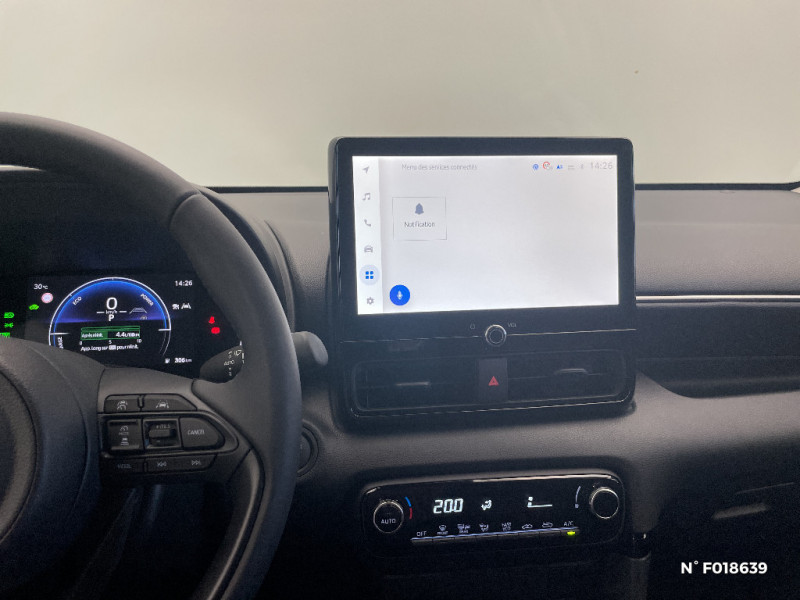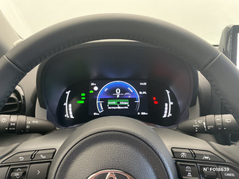 Système d'ouverture/fermeture et démarrage sans clé "Smart Entry & Start" / Système multimédia Toyota Smart Connect avec écran tactile 10,5" haute définition, Bluetooth, USB, Radio FM et DAB (digitale), 2 ports USB-C et 6 hp, Services intelligents avec Navigation connectée avec infotrafic en temps réel, mises à jour cartographiques, assistant vocal "Hey Toyota" et recherche de points d'intérêts (inclus 4 ans) / Sellerie tissu noir/gris / Services connectés de contrôle à distance MyToyota (inclus 4 ans) / Tableau de bord moussé / Feux de croisement à LED / Rétroviseur intérieur électrochromatique / Rétroviseurs extérieurs couleur carrosserie / Système d'appel d'urgence automatique "E-Call" / Système de connectivité smartphone sans fil Apple CarPlay et Android Auto / Antenne de toit aileron de requin / Boîte automatique à variation continue / Ciel de toit gris clair / Compteur numérique 7" / Contrôle de traction (TCS) / Double plancher du coffre / Electrostabilisateur programmé (ESP) / Toyota T-MATE / Toyota Safety Sense Système de sécurité précollision avec détection des véhicules, piétons et cyclistes, actif également dans les intersections+Alerte de franchissement de ligne avec aide au maintien dans la file, assistant de trajectoire et détecteur de fatigue+Lecture des panneaux de signalisation avec limiteur de vitesse+Gestion automatique des feux de route+Régulateur de vitesse adaptatif intelligent+Système d'arrêt d'urgence autonome +Système d'assistance à la conduite proactive+Suppression de l'acceleration