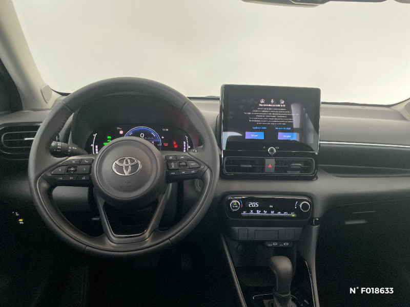Système multimédia Toyota Smart Connect avec écran tactile 10,5" haute définition, Bluetooth, USB, Radio FM et DAB (digitale), 2 ports USB-C et 6 hp, Services intelligents avec Navigation connectée avec infotrafic en temps réel, mises à jour cartographiques, assistant vocal "Hey Toyota" et recherche de points d'intérêts (inclus 4 ans) / Tableau de bord moussé / Antenne de toit aileron de requin / Boîte automatique à variation continue / Ciel de toit gris clair / Compteur numérique 7" / Contrôle de traction (TCS) / Toyota T-MATE / Toyota Safety Sense Système de sécurité précollision avec détection des véhicules, piétons et cyclistes, actif également dans les intersections+Alerte de franchissement de ligne avec aide au maintien dans la file, assistant de trajectoire et détecteur de fatigue+Lecture des panneaux de signalisation avec limiteur de vitesse+Gestion automatique des feux de route+Régulateur de vitesse adaptatif intelligent+Système d'arrêt d'urgence autonome +Système d'assistance à la conduite proactive+Suppression de l'acceleration / Double plancher du coffre / Electrostabilisateur programmé (ESP) / Feux de croisement à LED / Rétroviseur intérieur électrochromatique / Rétroviseurs extérieurs couleur carrosserie / Sellerie tissu noir/gris / Services connectés de contrôle à distance MyToyota (inclus 4 ans) / Système d'appel d'urgence automatique "E-Call" / Système de connectivité smartphone sans fil Apple CarPlay et Android Auto / Système d'ouverture/fermeture et démarrage sans clé "Smart Entry & Start"