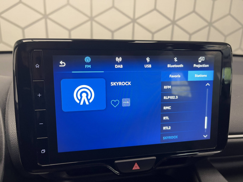 Antenne de toit aileron de requin / Ciel de toit gris clair / Double plancher du coffre / Ecran couleur tactile multifonction 7" / Enjoliveurs 15" / Feux AR à LED (hors clignotants) / Feux de route halogènes / Haut-parleurs x 4 / Rétroviseurs extérieurs couleur carrosserie / Système d'appel d'urgence automatique "E-Call" / Tableau de bord moussé / Toyota Safety Sense Système de sécurité précollision avec détection des véhicules, piétons et cyclistes, actif également dans les intersections. Alerte de franchissement de ligne avec aide au maintien dans la file, assistant de trajectoire et détecteur de fatigue, Lecture des panneaux de signalisation avec limiteur de vitesse, Gestion automatique des feux de route, Régulateur de vitesse adaptatif intelligent / Toyota Touch & App compatible avec Apple CarPlay et Android Auto / Toyota Touch & Go : système de navigation 3D à écran couleur tactile avec reconnaissance vocale et 3 ans de mises à jour cartographiques et de services connectés inclus / Toyota Touch: radio digitale (DAB), système de téléphonie Bluetooth et connectique auxiliaire/USB
