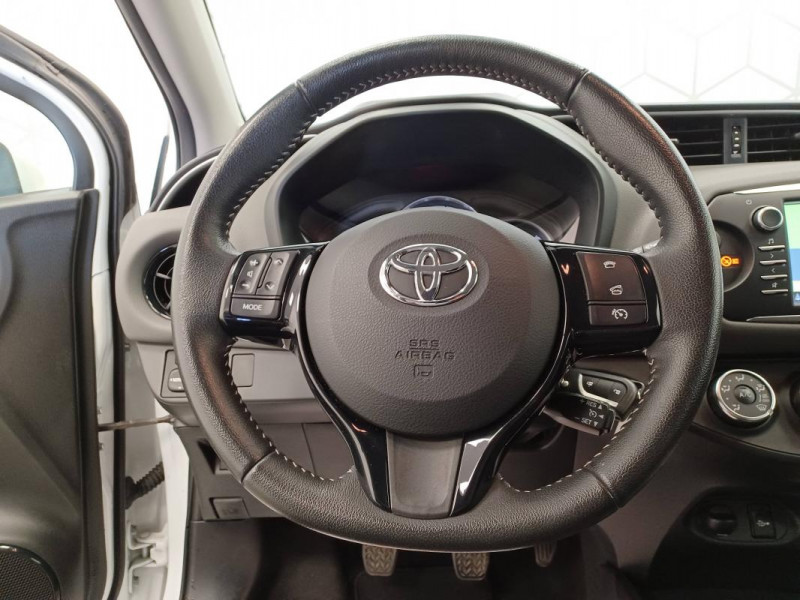 lateraux / rideaux et un protège-genoux conducteur) / Ciel de toit gris clair / Double plancher du coffre / Enjoliveurs 15 Kaori / Follow me home (feux AV à extinction différée) / Indicateur de perte de pression des pneus / Kit de réparation anti-crevaison / Ouverture/fermeture centralisée à distance / Phares halogènes avec feux de jour / Planche de bord Soft touch / Poignées de portes et rétroviseurs extérieurs couleur carrosserie / Pommeau de levier de vitesse gainé cuir / Rétroviseurs extérieurs chauffants / Système Toyota Touch 2 (écran tactile 7 / système de téléphonie Bluetooth / compatibilité iPod) / Toyota Safety Sense Système de sécurité précollision avec détection des piétons / gestion automatique des feux de route /