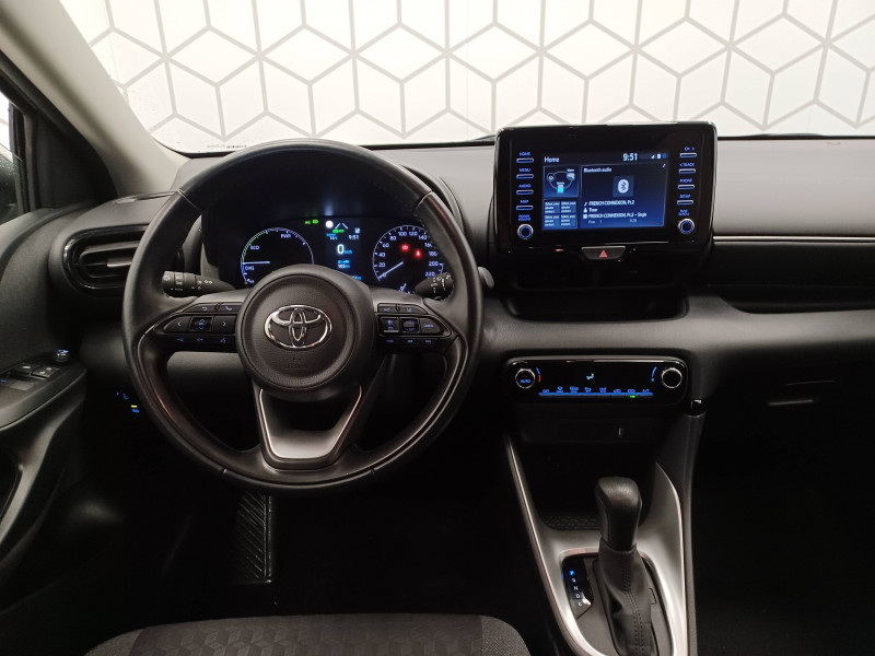 Antenne de toit aileron de requin / Ciel de toit gris clair / Double plancher du coffre / Ecran tactile 7" multifonction / Enjoliveurs 15" / Feux AR à LED (hors clignotants) / Feux de route halogènes / Haut-parleurs x 4 / Peinture Blanc Pur / Rétroviseurs extérieurs couleur carrosserie / Système d'appel d'urgence automatique "E-Call" / Tableau de bord moussé / Toyota Safety Sense Système de sécurité précollision avec détection des véhicules, piétons et cyclistes, actif également dans les intersections. Alerte de franchissement de ligne avec aide au maintien dans la file, assistant de trajectoire et détecteur de fatigue, Lecture des panneaux de signalisation avec limiteur de vitesse, Gestion automatique des feux de route, Régulateur de vitesse adaptatif intelligent / Toyota Touch & App compatible avec Apple CarPlay et Android Auto / Toyota Touch: radio digitale (DAB), système de téléphonie Bluetooth et connectique auxiliaire/USB