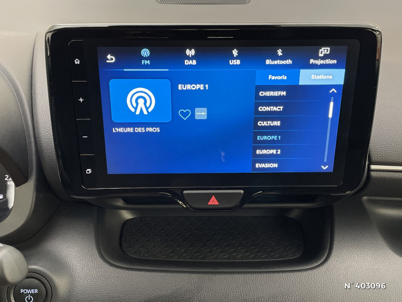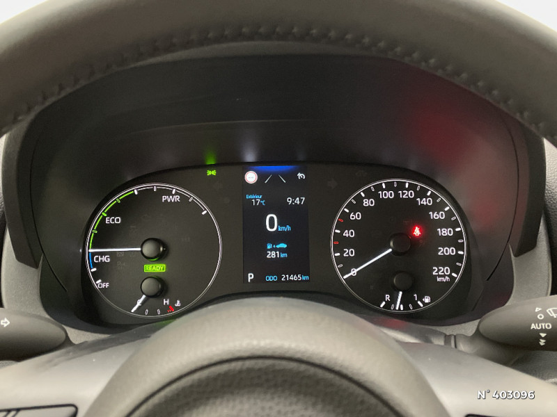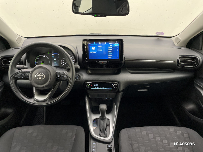 Antenne de toit aileron de requin / Boîte automatique à variation continue / Ciel de toit gris clair / Contrôle de traction (TCS) / Double plancher du coffre / Electrostabilisateur programmé (ESP) / Enjoliveurs 15" / Feux de route halogènes / Rétroviseur intérieur électrochromatique / Rétroviseurs extérieurs couleur carrosserie / Services connectés standards MyToyota (inclus 10 ans) / Système d'appel d'urgence automatique "E-Call" / Système de connectivité smartphone sans fil Apple CarPlay et Android Auto / Système d'ouverture/fermeture et démarrage sans clé "Smart Entry & Start" / Système multimédia Toyota Touch 3 écran tactile 9", radio digitale (DAB), Bluetooth, 2 ports USB-C et 6 hp / Tableau de bord moussé / Toyota T-MATE / Toyota Safety Sense Système de sécurité précollision avec détection des véhicules, piétons et cyclistes, actif également dans les intersections+Alerte de franchissement de ligne avec aide au maintien dans la file, assistant de trajectoire et détecteur de fatigue+Lecture des panneaux de signalisation avec limiteur de vitesse+Gestion automatique des feux de route+Régulateur de vitesse adaptatif intelligent+Système d'arrêt d'urgence autonome +Système d'assistance à la conduite proactive+Suppression de l'acceleration