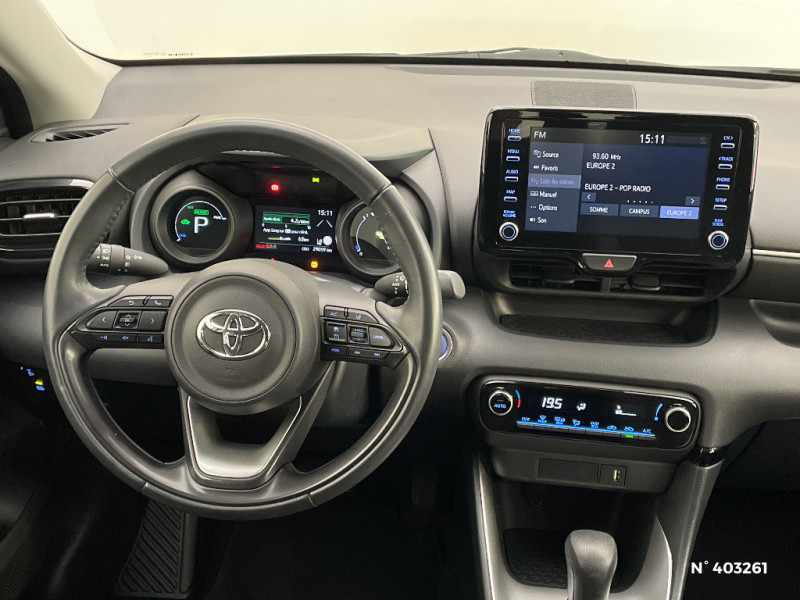 Rétroviseur intérieur électrochromatique / Rétroviseurs extérieurs couleur carrosserie / Sellerie Cuir Noir - type Sport / Système d'appel d'urgence automatique "E-Call" / Tableau de bord moussé / Toyota Safety Sense Système de sécurité précollision avec détection des véhicules, piétons et cyclistes, actif également dans les intersections. Alerte de franchissement de ligne avec aide au maintien dans la file, assistant de trajectoire et détecteur de fatigue, Lecture des panneaux de signalisation avec limiteur de vitesse, Gestion automatique des feux de route, Régulateur de vitesse adaptatif intelligent / Toyota Smart Connect avec écran couleur tactile 9" multifonction, 6 HP, navigation connectée et connectivité smartphone sans fil compatible AppleCar Play et Android Auto, et 4 ans de mises à jour cartographiques et de services connectés inclus / Toyota Touch & App compatible avec Apple CarPlay et Android Auto / Toyota Touch: radio digitale (DAB), système de téléphonie Bluetooth et connectique auxiliaire/USB / Antenne de toit aileron de requin / Calandre chromée / Ciel de toit gris clair / Contour de vitres chromé / Double plancher du coffre / Eclairage d'ambiance intérieur / Ecran TFT 4,2" / Ecrous antivol / Feux AR à LED (hors clignotants) / Feux AV/AR avec signature lumineuse Full LED / Haut-parleurs x 6 / Jantes alliage 17" Sakura usinées / Peinture Blanc Pur / Purificateur d'air ionique nanoe X / Réglage lombaire
