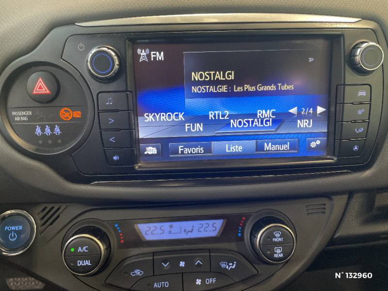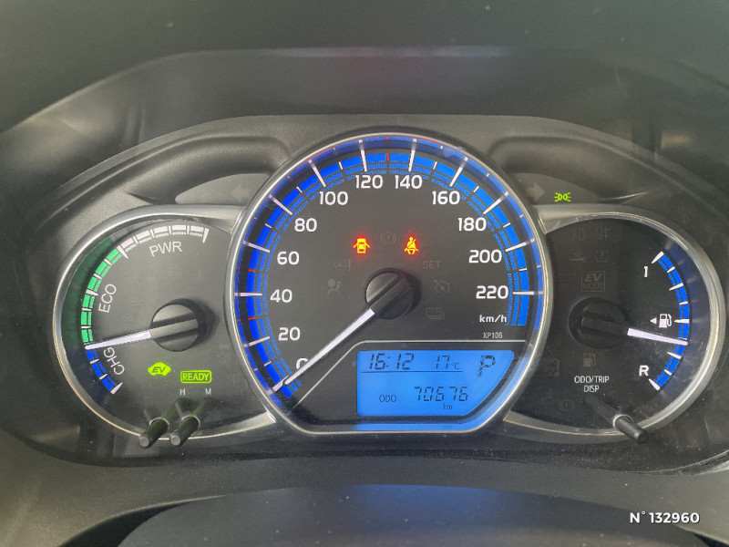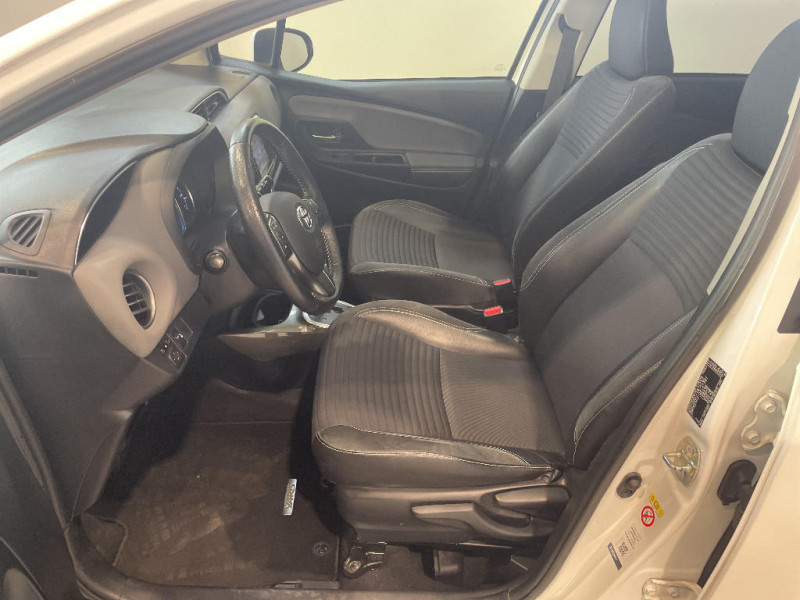 ABS, EBD et BA / 7 Airbags (frontaux, lateraux, rideaux et un protège-genoux conducteur) / Becquet AR de hayon / Boîte automatique E-CVT / Frein AR à disques / Indicateur de perte de pression des pneus / Kit de réparation anti-crevaison / Ligne de vitres latérales laquée noire / Planche de bord "Soft touch" / Poignées de portes extérieurs couleur carroserie / Projecteurs halogènes avec feux de jour à LED / Rétroviseurs extérieurs électriques dégivrants couleur carrosserie / Sellerie tissu/cuir et Alcantara Montmartre avec surpiqûres grises / Siège passager AV rabattable / Système de contrôle de stabilité (VSC) + Système de contrôle de motricité (TRC) / Système Toyota Touch 2 (écran tactile 7", système de téléphonie Bluetooth, compatibilité iPod) / Volant, frein à main et pommeau de levier de vitesses gainés cuir perforé avec surpiqûres gris / Accoudoir AV pour le conducteur