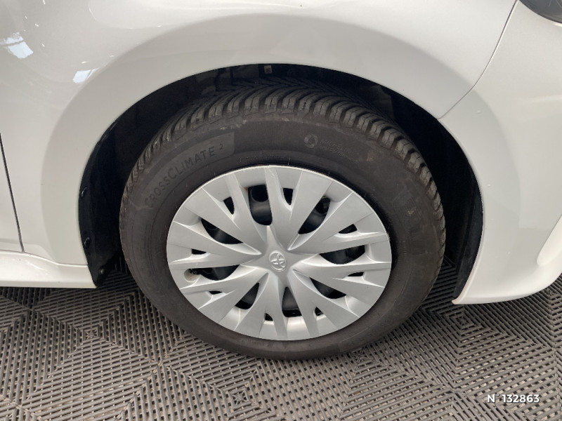 Ciel de toit gris clair / Double plancher du coffre / Ecran tactile 7" multifonction / Enjoliveurs 15" / Feux AR à LED (hors clignotants) / Feux de route halogènes / Haut-parleurs x 4 / Peinture Blanc Pur / Projecteurs halogènes avec feux de jour / Rétroviseurs extérieurs couleur carrosserie / Système d'appel d'urgence automatique "E-Call" / Tableau de bord moussé / Toyota Safety Sense Système de sécurité précollision avec détection des véhicules, piétons et cyclistes, actif également dans les intersections. Alerte de franchissement de ligne avec aide au maintien dans la file, assistant de trajectoire et détecteur de fatigue, Lecture des panneaux de signalisation avec limiteur de vitesse, Gestion automatique des feux de route, Régulateur de vitesse adaptatif intelligent / Toyota Touch & App compatible avec Apple CarPlay et Android Auto / Toyota Touch: radio digitale (DAB), système de téléphonie Bluetooth et connectique auxiliaire/USB / Antenne de toit aileron de requin
