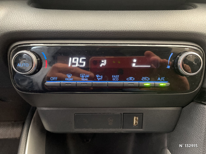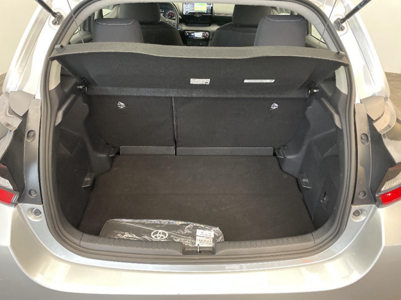 Antenne de toit aileron de requin / Ciel de toit gris clair / Double plancher du coffre / Ecran tactile 7" multifonction / Enjoliveurs 15" / Feux AR à LED (hors clignotants) / Feux de route halogènes / Haut-parleurs x 4 / Peinture Blanc Pur / Programme "Beyond Zero Academy" / Projecteurs halogènes avec feux de jour / Rétroviseurs extérieurs couleur carrosserie / Système d'appel d'urgence automatique "E-Call" / Tableau de bord moussé / Toyota Safety Sense Système de sécurité précollision avec détection des véhicules, piétons et cyclistes, actif également dans les intersections. Alerte de franchissement de ligne avec aide au maintien dans la file, assistant de trajectoire et détecteur de fatigue, Lecture des panneaux de signalisation avec limiteur de vitesse, Gestion automatique des feux de route, Régulateur de vitesse adaptatif intelligent / Toyota Touch & App compatible avec Apple CarPlay et Android Auto / Toyota Touch & Go : système de navigation à écran couleur tactile avec reconnaissance vocale, et 3 ans de mises à jour cartographiques et de services connectés inclus / Toyota Touch: radio digitale (DAB), système de téléphonie Bluetooth et connectique auxiliaire/USB