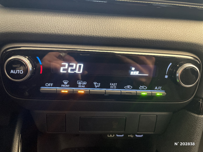 Double plancher du coffre / Electrostabilisateur programmé (ESP) / Feux de croisement à LED / Rétroviseur intérieur électrochromatique / Rétroviseurs extérieurs couleur carrosserie / Sellerie tissu noir/gris / Services connectés de contrôle à distance MyToyota (inclus 4 ans) / Système d'appel d'urgence automatique "E-Call" / Système de connectivité smartphone sans fil Apple CarPlay et Android Auto / Système d'ouverture/fermeture et démarrage sans clé "Smart Entry & Start" / Système multimédia Toyota Smart Connect avec écran tactile 10,5" haute définition, Bluetooth, USB, Radio FM et DAB (digitale), 2 ports USB-C et 6 hp, Services intelligents avec Navigation connectée avec infotrafic en temps réel, mises à jour cartographiques, assistant vocal "Hey Toyota" et recherche de points d'intérêts (inclus 4 ans) / Tableau de bord moussé / Toyota T-MATE / Toyota Safety Sense Système de sécurité précollision avec détection des véhicules, piétons et cyclistes, actif également dans les intersections+Alerte de franchissement de ligne avec aide au maintien dans la file, assistant de trajectoire et détecteur de fatigue+Lecture des panneaux de signalisation avec limiteur de vitesse+Gestion automatique des feux de route+Régulateur de vitesse adaptatif intelligent+Système d'arrêt d'urgence autonome +Système d'assistance à la conduite proactive+Suppression de l'acceleration / Antenne de toit aileron de requin / Boîte automatique à variation continue / Ciel de toit gris clair / Compteur numérique 7" / Contrôle de traction (TCS)
