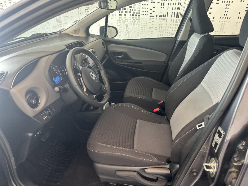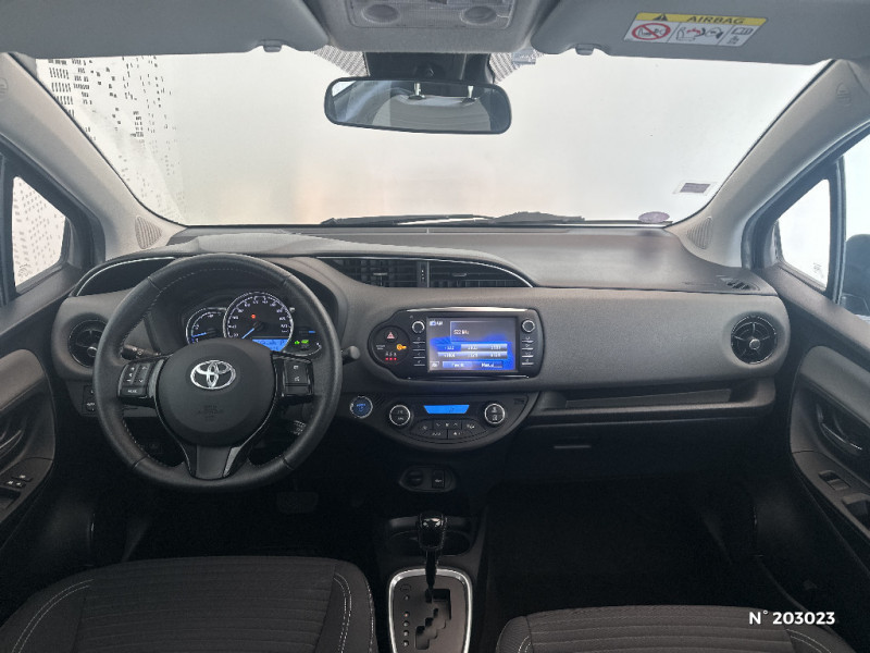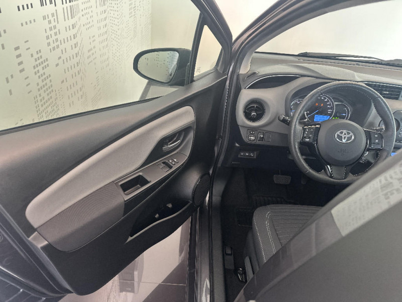 Toyota Touch 2 / Volant avec insert noir brillant / Volant, frein à main et pommeau de levier de vitesses gainés cuir perforé avec surpiqûres gris / 7 Airbags (frontaux, lateraux, rideaux et un protège-genoux conducteur) / ABS, EBD et BA / Aumônière de siège côté passager / Baguette de coffre couleur carrosserie / Boîte automatique E-CVT / Calandre inférieure Noire laquée / Calandre supérieure avec insert Chrome satiné / Cerclages des aérateurs et branches volant Noirs laqués / Diffuseur AR Noir / Double plancher du coffre / Enjoliveurs 15" Kaori / Fermeture centralisée des portes avec télécommande / Finition Chrome satiné (haut-parleurs, commandes de climatisation, entourage de levier de vitesses et inserts Toyota Touch 2) / Follow me home (feux AV à extinction différée) / Frein AR à disques / Indicateur de perte de pression des pneus / Kit de réparation de crevaison / Peinture Blanc Pur / Planche de bord "Soft touch" / Poignées de portes et rétroviseurs extérieurs couleur carrosserie / Projecteurs halogènes avec feux de jour / Sellerie tissu Mabillon / Système de contrôle de stabilité (VSC) + Système de contrôle de motricité (TRC) / Toyota Safety Sense Système de sécurité précollision avec détection des piétons, Alerte de franchissement de ligne et détecteur de fatigue, gestion automatique des feux de route, lecture des panneaux de signalisation, régulateur de vitesse adaptatif.