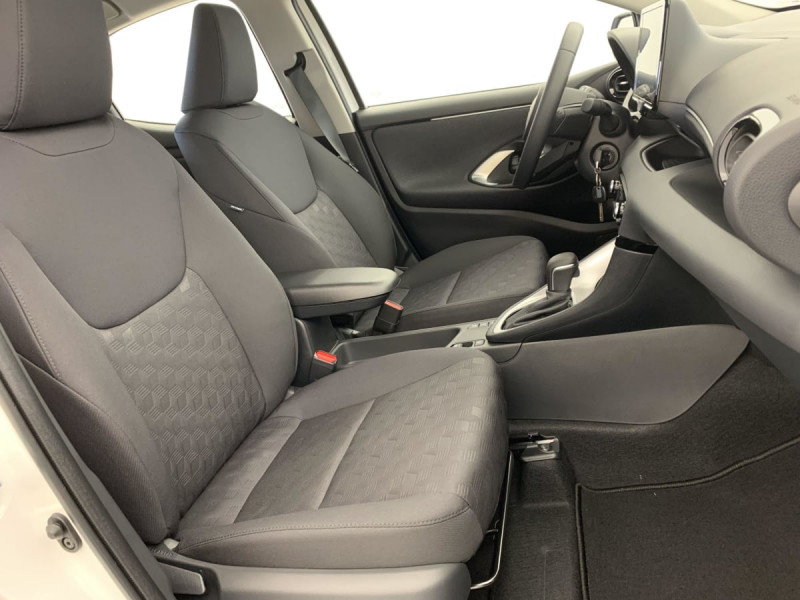 Tableau de bord moussé / Double plancher du coffre / Enjoliveurs 15" / Electrostabilisateur programmé (ESP) / Antenne de toit aileron de requin / Système d'appel d'urgence automatique "E-Call" / Ciel de toit gris clair / Feux de route halogènes / Système de connectivité smartphone sans fil Apple CarPlay et Android Auto / Toyota T-MATE / Toyota Safety Sense Système de sécurité précollision avec détection des véhicules, piétons et cyclistes, actif également dans les intersections+Alerte de franchissement de ligne avec aide au maintien dans la file, assistant de trajectoire et détecteur de fatigue+Lecture des panneaux de signalisation avec limiteur de vitesse+Gestion automatique des feux de route+Régulateur de vitesse adaptatif intelligent+Système d'arrêt d'urgence autonome +Système d'assistance à la conduite proactive+Suppression de l'acceleration / Rétroviseurs extérieurs couleur carrosserie / Système multimédia Toyota Touch 3 écran tactile 9", radio digitale (DAB), Bluetooth, 2 ports USB-C et 6 hp / Boîte automatique à variation continue / Contrôle de traction (TCS) / Rétroviseur intérieur électrochromatique /
