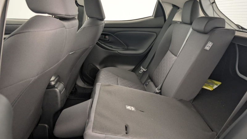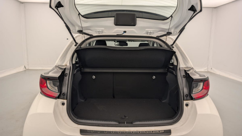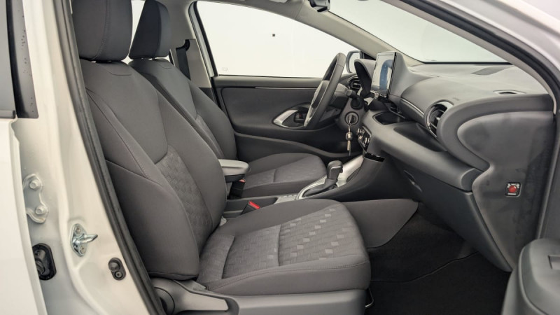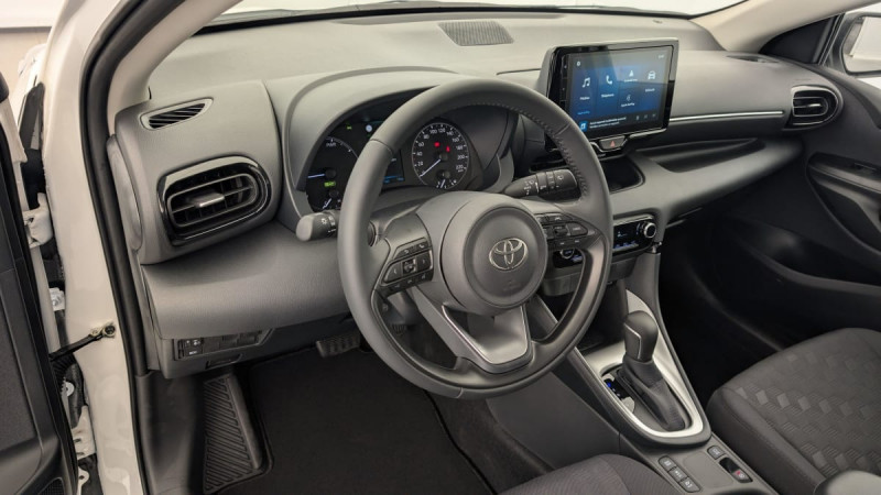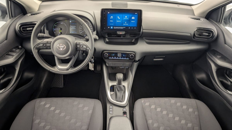 Tableau de bord moussé / Double plancher du coffre / Enjoliveurs 15" / Electrostabilisateur programmé (ESP) / Antenne de toit aileron de requin / Système d'appel d'urgence automatique "E-Call" / Ciel de toit gris clair / Feux de route halogènes / Système de connectivité smartphone sans fil Apple CarPlay et Android Auto / Toyota T-MATE / Toyota Safety Sense Système de sécurité précollision avec détection des véhicules, piétons et cyclistes, actif également dans les intersections+Alerte de franchissement de ligne avec aide au maintien dans la file, assistant de trajectoire et détecteur de fatigue+Lecture des panneaux de signalisation avec limiteur de vitesse+Gestion automatique des feux de route+Régulateur de vitesse adaptatif intelligent+Système d'arrêt d'urgence autonome +Système d'assistance à la conduite proactive+Suppression de l'acceleration / Rétroviseurs extérieurs couleur carrosserie / Système multimédia Toyota Touch 3 écran tactile 9", radio digitale (DAB), Bluetooth, 2 ports USB-C et 6 hp / Boîte automatique à variation continue / Contrôle de traction (TCS) / Rétroviseur intérieur électrochromatique /