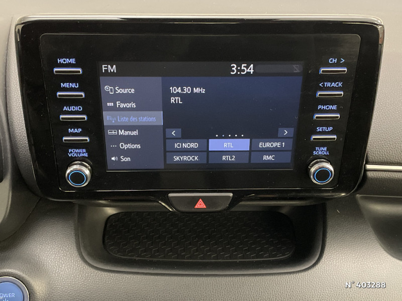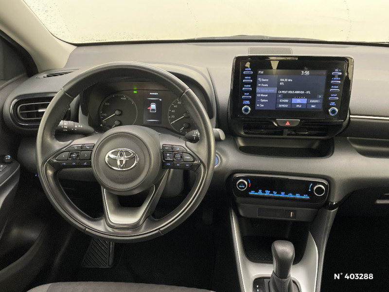 Système d'ouverture/fermeture et démarrage sans clé "Smart Entry & Start" / Système multimédia Toyota Touch 3 écran tactile 9", radio digitale (DAB), Bluetooth, 2 ports USB-C et 6 hp / Tableau de bord moussé / Toyota T-MATE / Toyota Safety Sense Système de sécurité précollision avec détection des véhicules, piétons et cyclistes, actif également dans les intersections+Alerte de franchissement de ligne avec aide au maintien dans la file, assistant de trajectoire et détecteur de fatigue+Lecture des panneaux de signalisation avec limiteur de vitesse+Gestion automatique des feux de route+Régulateur de vitesse adaptatif intelligent+Système d'arrêt d'urgence autonome +Système d'assistance à la conduite proactive+Suppression de l'acceleration / Feux de route halogènes / Rétroviseur intérieur électrochromatique / Contrôle de traction (TCS) / Double plancher du coffre / Electrostabilisateur programmé (ESP) / Enjoliveurs 15" / Antenne de toit aileron de requin / Boîte automatique à variation continue / Ciel de toit gris clair / Rétroviseurs extérieurs couleur carrosserie / Services connectés standards MyToyota (inclus 10 ans) / Système d'appel d'urgence automatique "E-Call" / Système de connectivité smartphone sans fil Apple CarPlay et Android Auto