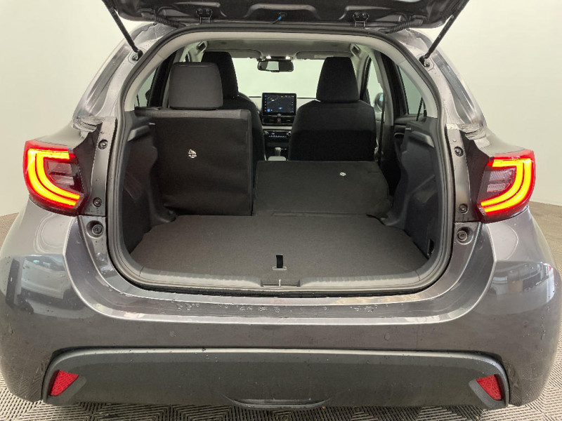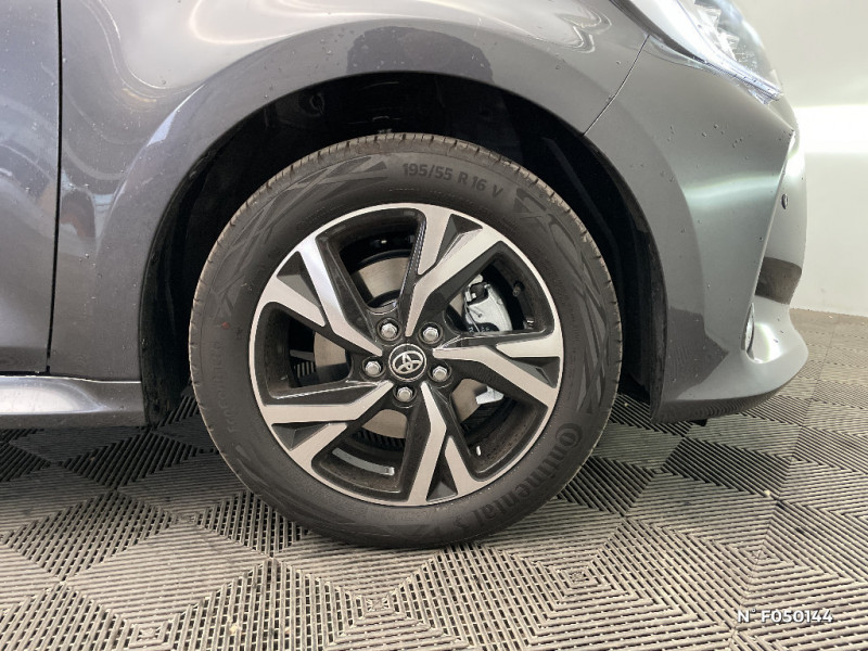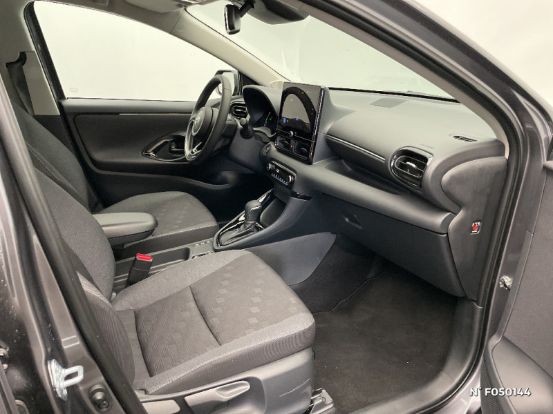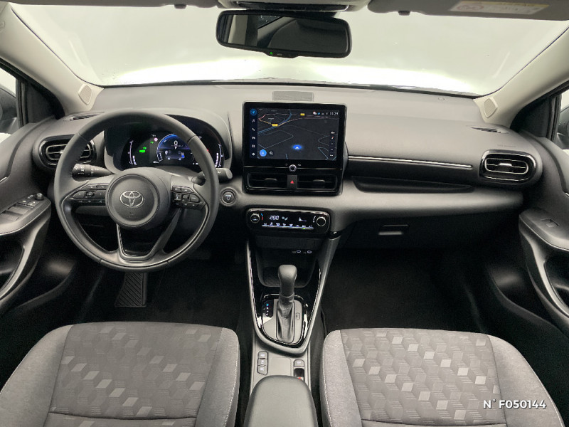 Antenne de toit aileron de requin / Boîte automatique à variation continue / Ciel de toit gris clair / Compteur numérique 7" / Contrôle de traction (TCS) / Double plancher du coffre / Electrostabilisateur programmé (ESP) / Feux de croisement à LED / Rétroviseur intérieur électrochromatique / Rétroviseurs extérieurs couleur carrosserie / Sellerie tissu noir/gris / Services connectés de contrôle à distance MyToyota (inclus 4 ans) / Système d'appel d'urgence automatique "E-Call" / Système de connectivité smartphone sans fil Apple CarPlay et Android Auto / Système d'ouverture/fermeture et démarrage sans clé "Smart Entry & Start" / Toyota T-MATE / Toyota Safety Sense Système de sécurité précollision avec détection des véhicules, piétons et cyclistes, actif également dans les intersections+Alerte de franchissement de ligne avec aide au maintien dans la file, assistant de trajectoire et détecteur de fatigue+Lecture des panneaux de signalisation avec limiteur de vitesse+Gestion automatique des feux de route+Régulateur de vitesse adaptatif intelligent+Système d'arrêt d'urgence autonome +Système d'assistance à la conduite proactive+Suppression de l'acceleration / Système multimédia Toyota Smart Connect avec écran tactile 10,5" haute définition, Bluetooth, USB, Radio FM et DAB (digitale), 2 ports USB-C et 6 hp, Services intelligents avec Navigation connectée avec infotrafic en temps réel, mises à jour cartographiques, assistant vocal "Hey Toyota" et recherche de points d'intérêts (inclus 4 ans) / Tableau de bord moussé