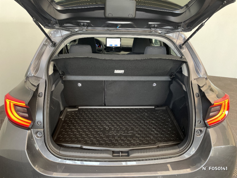 Antenne de toit aileron de requin / Rétroviseur intérieur électrochromatique / Rétroviseurs extérieurs couleur carrosserie / Sellerie tissu noir/gris / Services connectés de contrôle à distance MyToyota (inclus 4 ans) / Système d'appel d'urgence automatique "E-Call" / Système de connectivité smartphone sans fil Apple CarPlay et Android Auto / Système d'ouverture/fermeture et démarrage sans clé "Smart Entry & Start" / Système multimédia Toyota Smart Connect avec écran tactile 10,5" haute définition, Bluetooth, USB, Radio FM et DAB (digitale), 2 ports USB-C et 6 hp, Services intelligents avec Navigation connectée avec infotrafic en temps réel, mises à jour cartographiques, assistant vocal "Hey Toyota" et recherche de points d'intérêts (inclus 4 ans) / Tableau de bord moussé / Toyota T-MATE / Toyota Safety Sense Système de sécurité précollision avec détection des véhicules, piétons et cyclistes, actif également dans les intersections+Alerte de franchissement de ligne avec aide au maintien dans la file, assistant de trajectoire et détecteur de fatigue+Lecture des panneaux de signalisation avec limiteur de vitesse+Gestion automatique des feux de route+Régulateur de vitesse adaptatif intelligent+Système d'arrêt d'urgence autonome +Système d'assistance à la conduite proactive+Suppression de l'acceleration / Boîte automatique à variation continue / Ciel de toit gris clair / Compteur numérique 7" / Contrôle de traction (TCS) / Double plancher du coffre / Electrostabilisateur programmé (ESP) / Feux de croisement à LED