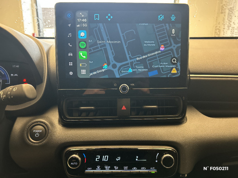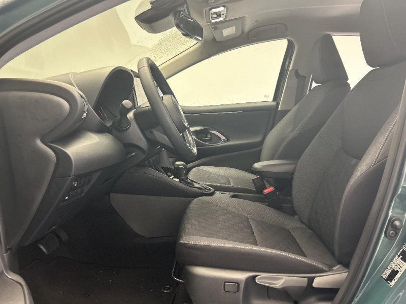 Compteur numérique 7" / Antenne de toit aileron de requin / Boîte automatique à variation continue / Double plancher du coffre / Electrostabilisateur programmé (ESP) / Feux de croisement à LED / Rétroviseur intérieur électrochromatique / Rétroviseurs extérieurs couleur carrosserie / Sellerie tissu noir/gris / Services connectés de contrôle à distance MyToyota (inclus 4 ans) / Système d'appel d'urgence automatique "E-Call" / Système de connectivité smartphone sans fil Apple CarPlay et Android Auto / Système d'ouverture/fermeture et démarrage sans clé "Smart Entry & Start" / Système multimédia Toyota Smart Connect avec écran tactile 10,5" haute définition, Bluetooth, USB, Radio FM et DAB (digitale), 2 ports USB-C et 6 hp, Services intelligents avec Navigation connectée avec infotrafic en temps réel, mises à jour cartographiques, assistant vocal "Hey Toyota" et recherche de points d'intérêts (inclus 4 ans) / Tableau de bord moussé / Toyota T-MATE / Toyota Safety Sense Système de sécurité précollision avec détection des véhicules, piétons et cyclistes, actif également dans les intersections+Alerte de franchissement de ligne avec aide au maintien dans la file, assistant de trajectoire et détecteur de fatigue+Lecture des panneaux de signalisation avec limiteur de vitesse+Gestion automatique des feux de route+Régulateur de vitesse adaptatif intelligent+Système d'arrêt d'urgence autonome +Système d'assistance à la conduite proactive+Suppression de l'acceleration / Contrôle de traction (TCS) / Ciel de toit gris clair