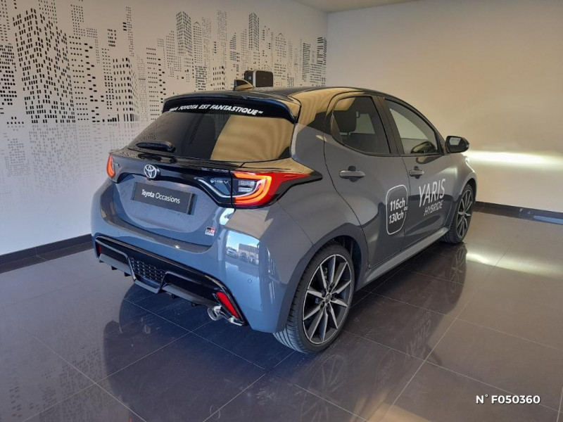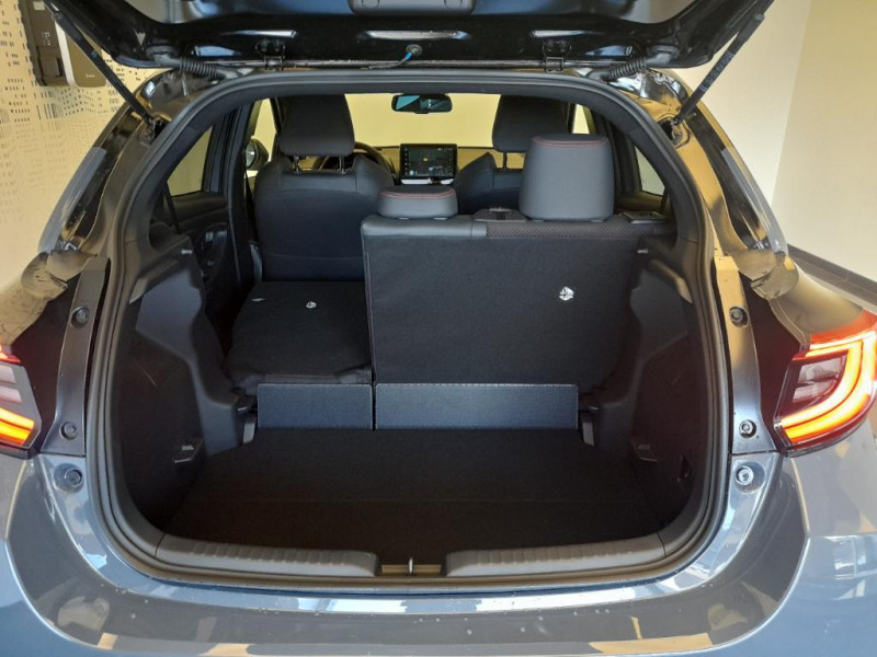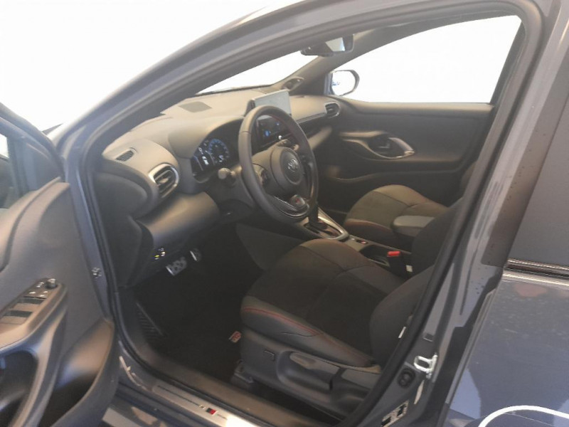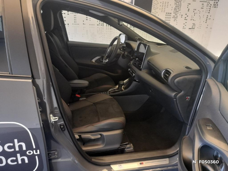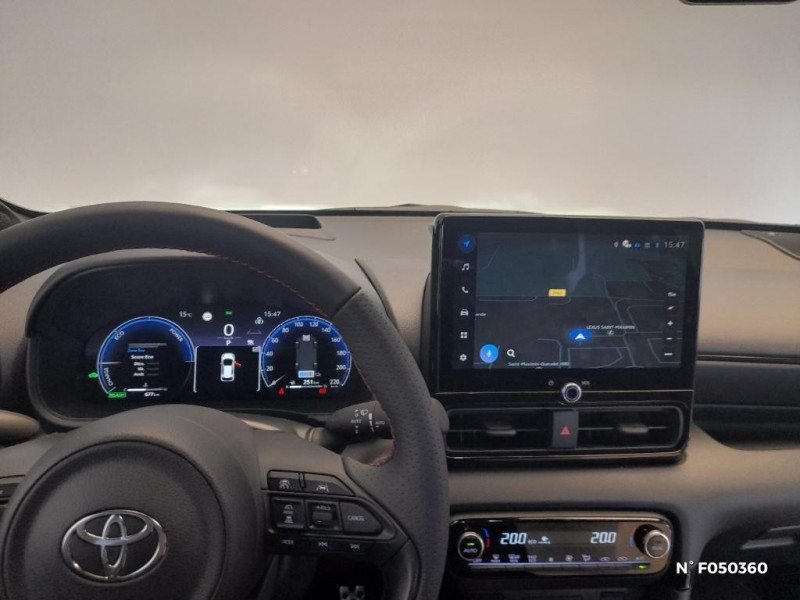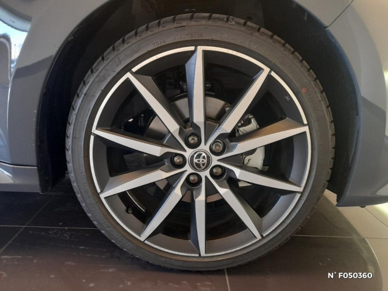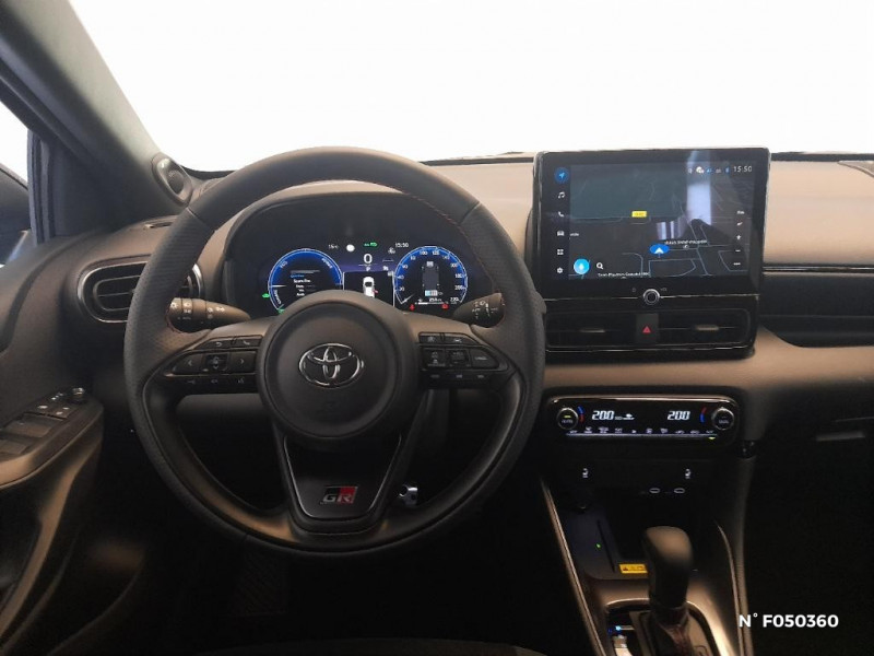 Logo GR SPORT (volant, bouton Start et appuis-tête AV) / Pédalier en aluminium / Peinture nacrée bi-ton / Purificateur d'air ionique nanoe X / Rétroviseur intérieur électrochromatique / Sellerie Premium et suédine noire perforée rouge, avec surpiqûres rouges / Services connectés de contrôle à distance MyToyota (inclus 4 ans) / Siège conducteur avec support lombaire électrique / Suspensions raffermies / Système d'appel d'urgence automatique "E-Call" / Système de connectivité smartphone sans fil Apple CarPlay et Android Auto / Système d'ouverture/fermeture et démarrage sans clé "Smart Entry & Start" / Système multimédia Toyota Smart Connect avec écran tactile 10,5" haute définition, Bluetooth, USB, Radio FM et DAB (digitale), 2 ports USB-C et 6 hp, Services intelligents avec Navigation connectée avec infotrafic en temps réel, mises à jour cartographiques, assistant vocal "Hey Toyota" et recherche de points d'intérêts (inclus 4 ans) / Tableau de bord moussé / Toit noir / Toyota T-MATE / Systemes d'aide à la conduite et au stationnement Avertisseur de circulation AR, Avertisseur d'angles morts, Aide à la sortie sécurisée / Volant chauffant / Volant cuir avec surpiqûres rouges / Toyota T-MATE / Toyota Safety Sense Système de sécurité précollision avec détection des véhicules, piétons et cyclistes, actif également dans les intersections+Alerte de franchissement de ligne avec aide au maintien dans la file, assistant de trajectoire et détecteur de fatigue+Lecture des panneaux de signalisation avec limiteur de vitesse+Gestion automatique des feux de route+Régulateur de vitesse adaptatif intelligent+Système d'arrêt d'urgence autonome +Système d'assistance à la conduite proactive+Suppression de l'acceleration / Antenne de toit aileron de requin / Boîte automatique à variation continue / Calandre AV spécifique GR Sport / Ciel de toit noir / Clé digitale / Compteur numérique personnalisable 12,3" / Contour de vitres noir laqué / Contrôle de traction (TCS) / Diffuseur AR / Double plancher du coffre / Eclairage d'ambiance intérieur / Electrostabilisateur programmé (ESP) / Feux de croisement à LED / Insert inférieur de calandre noir