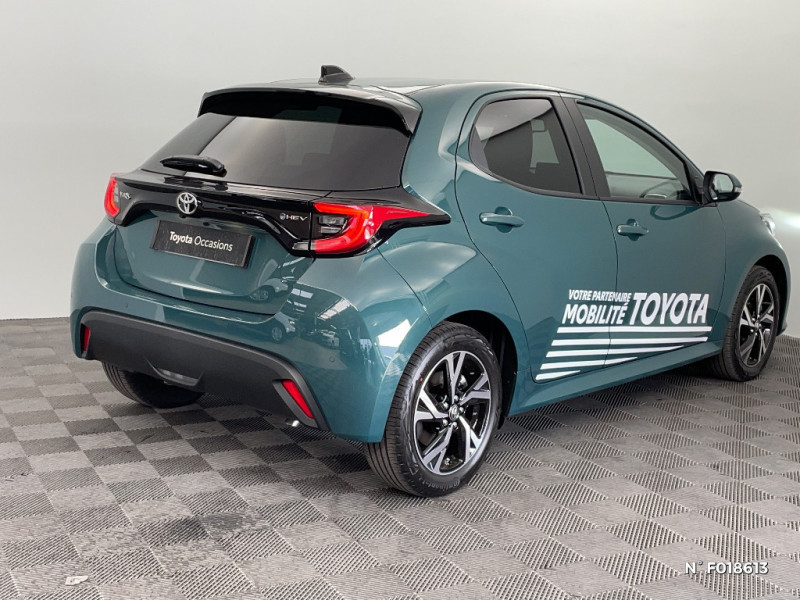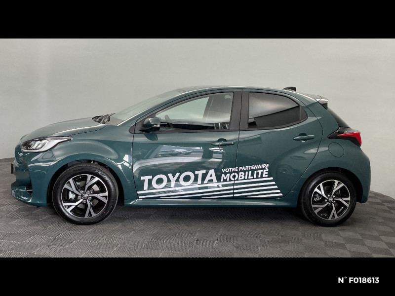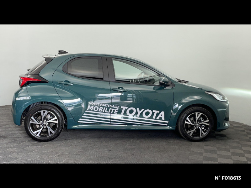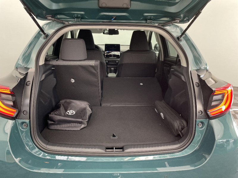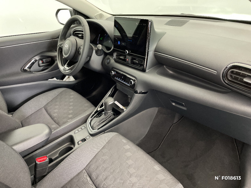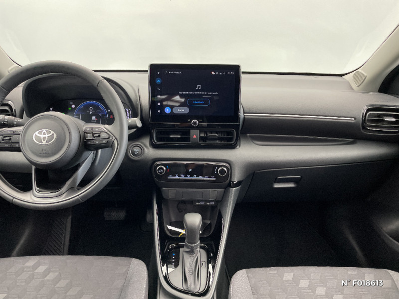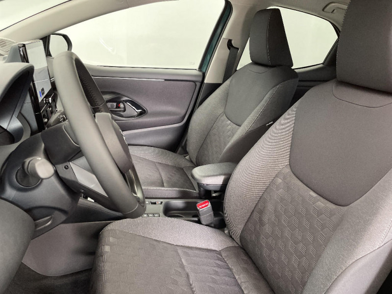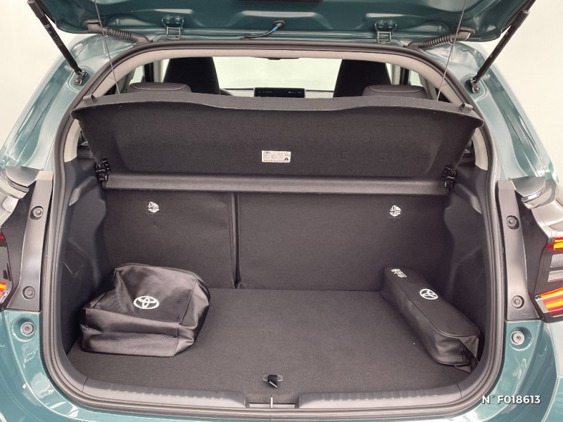 Antenne de toit aileron de requin / Boîte automatique à variation continue / Ciel de toit gris clair / Compteur numérique 7" / Contrôle de traction (TCS) / Double plancher du coffre / Electrostabilisateur programmé (ESP) / Feux de croisement à LED / Rétroviseur intérieur électrochromatique / Rétroviseurs extérieurs couleur carrosserie / Sellerie tissu noir/gris / Services connectés de contrôle à distance MyToyota (inclus 4 ans) / Système d'appel d'urgence automatique "E-Call" / Système de connectivité smartphone sans fil Apple CarPlay et Android Auto / Système d'ouverture/fermeture et démarrage sans clé "Smart Entry & Start" / Système multimédia Toyota Smart Connect avec écran tactile 10,5" haute définition, Bluetooth, USB, Radio FM et DAB (digitale), 2 ports USB-C et 6 hp, Services intelligents avec Navigation connectée avec infotrafic en temps réel, mises à jour cartographiques, assistant vocal "Hey Toyota" et recherche de points d'intérêts (inclus 4 ans) / Tableau de bord moussé / Toyota T-MATE / Toyota Safety Sense Système de sécurité précollision avec détection des véhicules, piétons et cyclistes, actif également dans les intersections+Alerte de franchissement de ligne avec aide au maintien dans la file, assistant de trajectoire et détecteur de fatigue+Lecture des panneaux de signalisation avec limiteur de vitesse+Gestion automatique des feux de route+Régulateur de vitesse adaptatif intelligent+Système d'arrêt d'urgence autonome +Système d'assistance à la conduite proactive+Suppression de l'acceleration