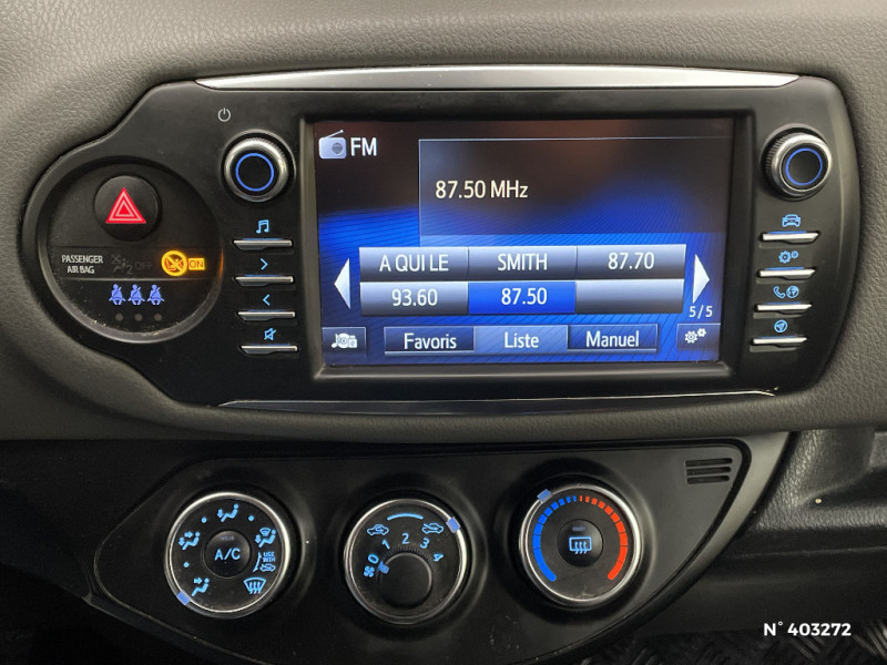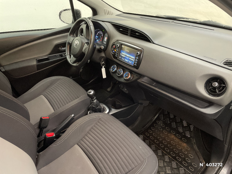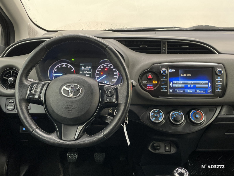 Ciel de toit gris clair / 7 Airbags (frontaux, lateraux, rideaux et un protège-genoux conducteur) / Ouverture/fermeture centralisée à distance / Double plancher du coffre / Enjoliveurs 15" Kaori / Follow me home (feux AV à extinction différée) / Indicateur de perte de pression des pneus / Kit de réparation anti-crevaison / Phares halogènes avec feux de jour / Planche de bord "Soft touch" / Poignées de portes et rétroviseurs extérieurs couleur carrosserie / Pommeau de levier de vitesse gainé cuir / Système Toyota Touch 2 (écran tactile 7", système de téléphonie Bluetooth, compatibilité iPod) / Toyota Safety Sense Système de sécurité précollision avec détection des piétons, Alerte de franchissement de ligne et détecteur de fatigue, gestion automatique des feux de route, lecture des panneaux de signalisation, régulateur de vitesse adaptatif.