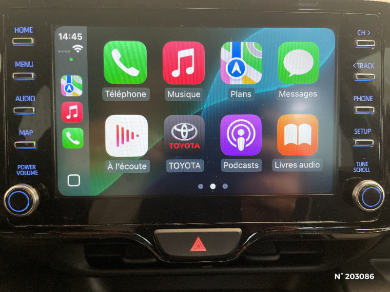 Antenne de toit aileron de requin / Ciel de toit gris clair / Double plancher du coffre / Ecran TFT 4,2" / Feux AR à LED (hors clignotants) / Feux AV/AR avec signature lumineuse Full LED / Haut-parleurs x 4 / Peinture Blanc Pur / Rétroviseur intérieur électrochromatique / Rétroviseurs extérieurs couleur carrosserie / Système d'appel d'urgence automatique "E-Call" / Tableau de bord moussé / Toyota Safety Sense Système de sécurité précollision avec détection des véhicules, piétons et cyclistes, actif également dans les intersections. Alerte de franchissement de ligne avec aide au maintien dans la file, assistant de trajectoire et détecteur de fatigue, Lecture des panneaux de signalisation avec limiteur de vitesse, Gestion automatique des feux de route, Régulateur de vitesse adaptatif intelligent / Toyota Touch & App compatible avec Apple CarPlay et Android Auto / Toyota Touch: radio digitale (DAB), système de téléphonie Bluetooth et connectique auxiliaire/USB