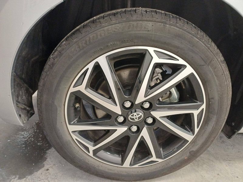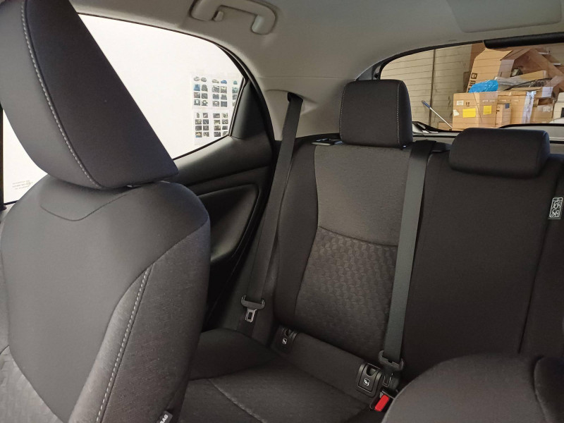 6 HP / Antenne de toit aileron de requin / Double plancher du coffre / Ecran TFT 7" / Feux AR à LED (hors clignotants) / Feux de croisement à LED / Rétroviseur intérieur électrochromatique / Sellerie tissu noir/gris / Services connectés MyT avec contrôle à distance (Verrouillage et déverrouillage des portes, localiser mon véhicule (feux clignotants) et commande à distance de température) / Système d'appel d'urgence automatique "E-Call" / Système d'ouverture/fermeture et démarrage sans clé "Smart Entry & Start" / Système multimédia Toyota Smart Connect avec Ecran tactile 10,5", Navigation connectée avec radio digitale DAB, Bluetoot, 2 ports USB-C, infotrafic en temps réel, Smart Parking (aide à la recherche de stationnement), Connectivité smartphone sans fil, Assistant vocal HEY TOYOTA, 4 ans de mises à jour cartographiques et services connectés inclus / Toyota Safety Sense 3 Alerte de franchissement de ligne avec aide au maintien dans la file et assistant de trajectoire et détecteur de fatigue (LDA), Gestion automatique des feux de route (AHB), Lecture des panneaux de signalisation de route (RSA), Régulateur de vitesse adaptatif (ACC)