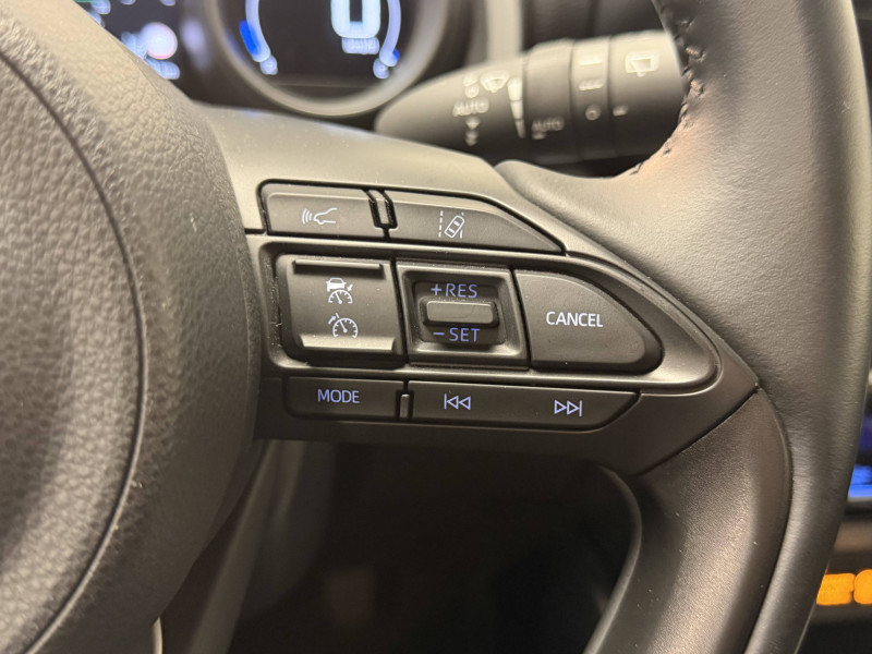 Antenne de toit aileron de requin / Ciel de toit gris clair / Double plancher du coffre / Ecran TFT 4,2" / Feux AR à LED (hors clignotants) / Haut-parleurs x 4 / Rétroviseur intérieur électrochromatique / Rétroviseurs extérieurs couleur carrosserie / Système d'appel d'urgence automatique "E-Call" / Tableau de bord moussé / Toyota Safety Sense Système de sécurité précollision avec détection des véhicules, piétons et cyclistes, actif également dans les intersections. Alerte de franchissement de ligne avec aide au maintien dans la file, assistant de trajectoire et détecteur de fatigue, Lecture des panneaux de signalisation avec limiteur de vitesse, Gestion automatique des feux de route, Régulateur de vitesse adaptatif intelligent / Toyota Touch & App compatible avec Apple CarPlay et Android Auto / Toyota Touch: radio digitale (DAB), système de téléphonie Bluetooth et connectique auxiliaire/USB