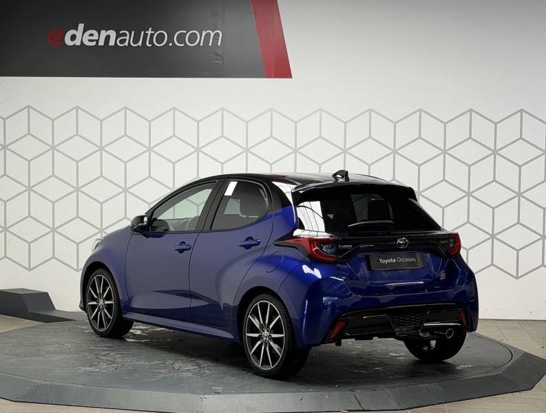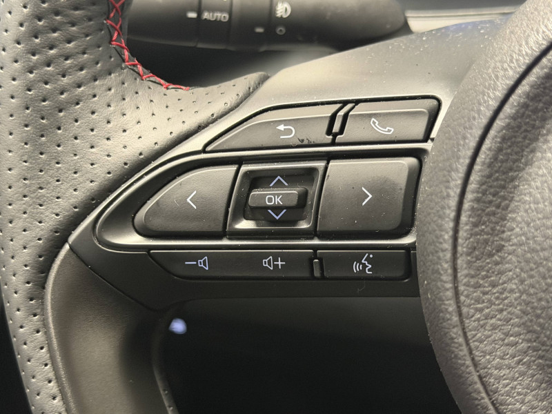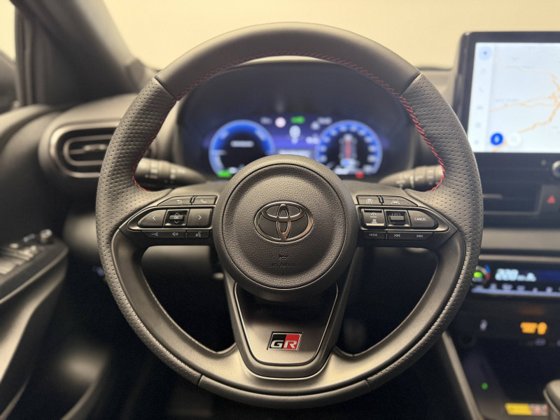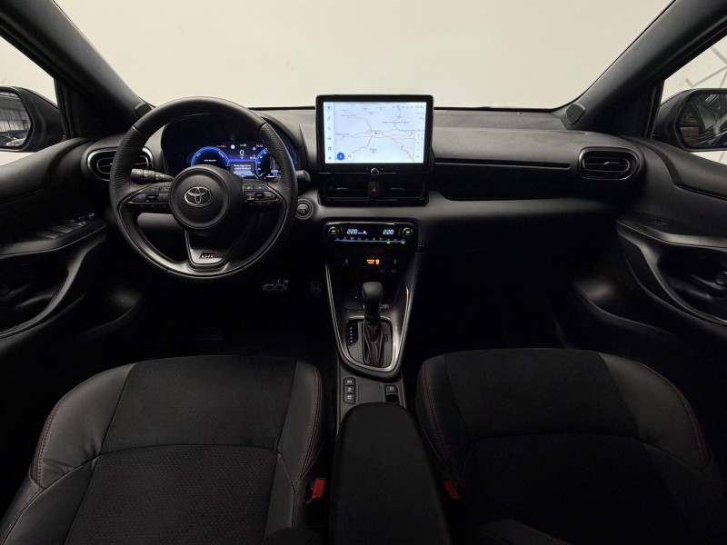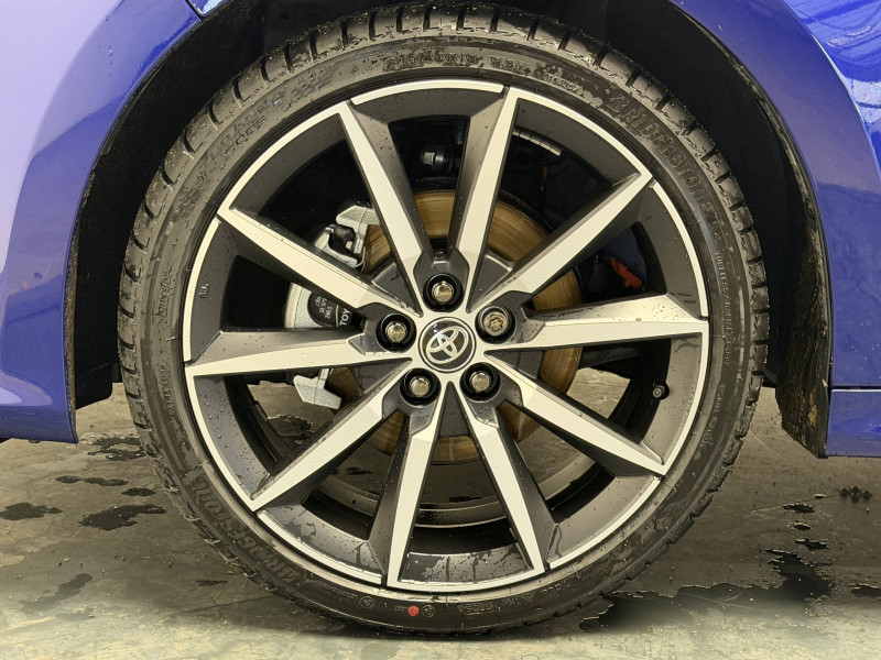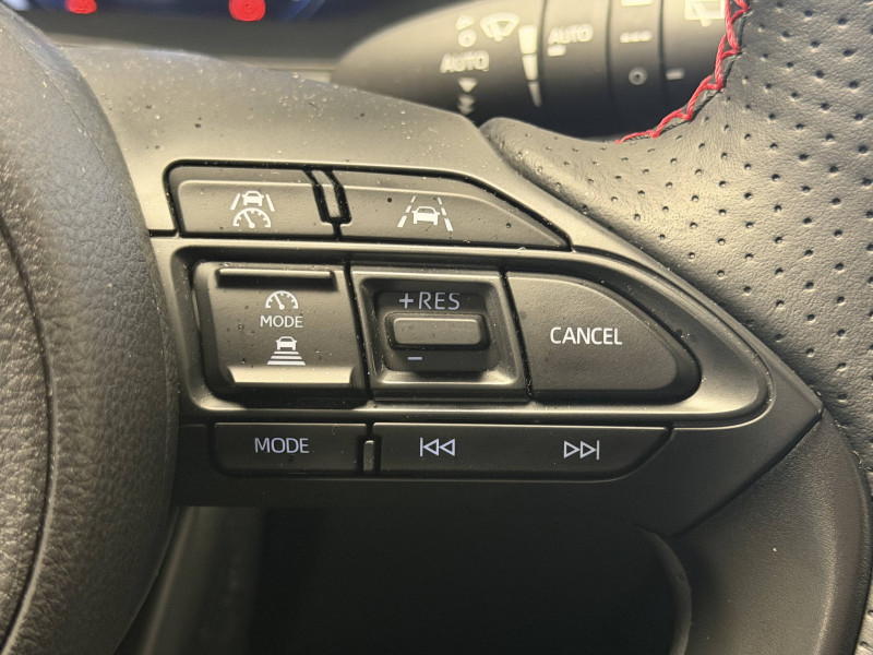 Antenne de toit aileron de requin / Boîte automatique à variation continue / Calandre AV spécifique GR Sport / Ciel de toit noir / Clé digitale / Compteur numérique personnalisable 12,3" / Contour de vitres noir laqué / Contrôle de traction (TCS) / Diffuseur AR / Double plancher du coffre / Eclairage d'ambiance intérieur / Electrostabilisateur programmé (ESP) / Feux de croisement à LED / Insert inférieur de calandre noir / Logo GR SPORT (volant, bouton Start et appuis-tête AV) / Pédalier en aluminium / Peinture nacrée bi-ton / Purificateur d'air ionique nanoe X / Rétroviseur intérieur électrochromatique / Sellerie Premium et suédine noire perforée rouge, avec surpiqûres rouges / Services connectés de contrôle à distance MyToyota (inclus 4 ans) / Siège conducteur avec support lombaire électrique / Suspensions raffermies / Système d'appel d'urgence automatique "E-Call" / Système de connectivité smartphone sans fil Apple CarPlay et Android Auto / Système d'ouverture/fermeture et démarrage sans clé "Smart Entry & Start" / Système multimédia Toyota Smart Connect avec écran tactile 10,5" haute définition, Bluetooth, USB, Radio FM et DAB (digitale), 2 ports USB-C et 6 hp, Services intelligents avec Navigation connectée avec infotrafic en temps réel, mises à jour cartographiques, assistant vocal "Hey Toyota" et recherche de points d'intérêts (inclus 4 ans) / Tableau de bord moussé / Toit noir / Toyota T-MATE / Systemes d'aide à la conduite et au stationnement Avertisseur de circulation AR, Avertisseur d'angles morts, Aide à la sortie sécurisée / Toyota T-MATE / Toyota Safety Sense Système de sécurité précollision avec détection des véhicules, piétons et cyclistes, actif également dans les intersections+Alerte de franchissement de ligne avec aide au maintien dans la file, assistant de trajectoire et détecteur de fatigue+Lecture des panneaux de signalisation avec limiteur de vitesse+Gestion automatique des feux de route+Régulateur de vitesse adaptatif intelligent+Système d'arrêt d'urgence autonome +Système d'assistance à la conduite proactive+Suppression de l'acceleration / Volant chauffant / Volant cuir avec surpiqûres rouges