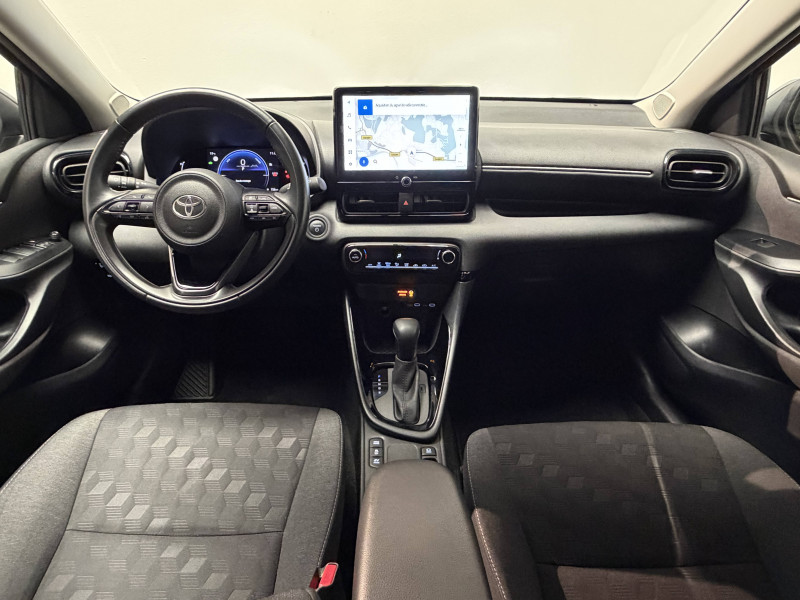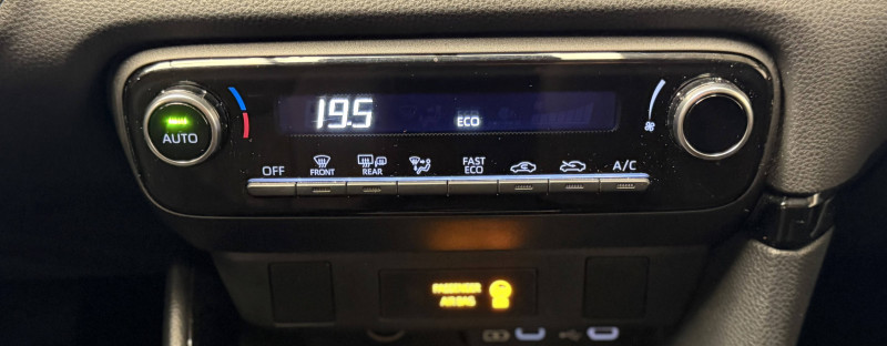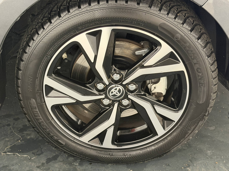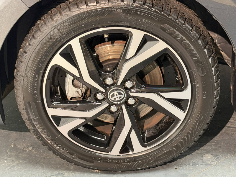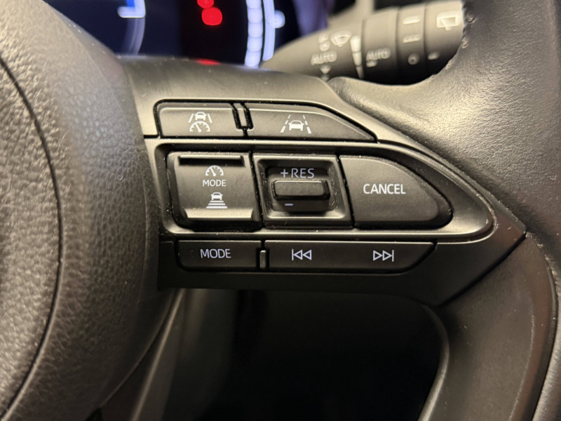 Antenne de toit aileron de requin / Boîte automatique à variation continue / Ciel de toit gris clair / Compteur numérique 7" / Contrôle de traction (TCS) / Double plancher du coffre / Electrostabilisateur programmé (ESP) / Feux de croisement à LED / Rétroviseur intérieur électrochromatique / Rétroviseurs extérieurs couleur carrosserie / Sellerie tissu noir/gris / Services connectés de contrôle à distance MyToyota (inclus 4 ans) / Système d'appel d'urgence automatique "E-Call" / Système de connectivité smartphone sans fil Apple CarPlay et Android Auto / Système d'ouverture/fermeture et démarrage sans clé "Smart Entry & Start" / Système multimédia Toyota Smart Connect avec écran tactile 10,5" haute définition, Bluetooth, USB, Radio FM et DAB (digitale), 2 ports USB-C et 6 hp, Services intelligents avec Navigation connectée avec infotrafic en temps réel, mises à jour cartographiques, assistant vocal "Hey Toyota" et recherche de points d'intérêts (inclus 4 ans) / Tableau de bord moussé / Toyota T-MATE / Toyota Safety Sense Système de sécurité précollision avec détection des véhicules, piétons et cyclistes, actif également dans les intersections+Alerte de franchissement de ligne avec aide au maintien dans la file, assistant de trajectoire et détecteur de fatigue+Lecture des panneaux de signalisation avec limiteur de vitesse+Gestion automatique des feux de route+Régulateur de vitesse adaptatif intelligent+Système d'arrêt d'urgence autonome +Système d'assistance à la conduite proactive+Suppression de l'acceleration