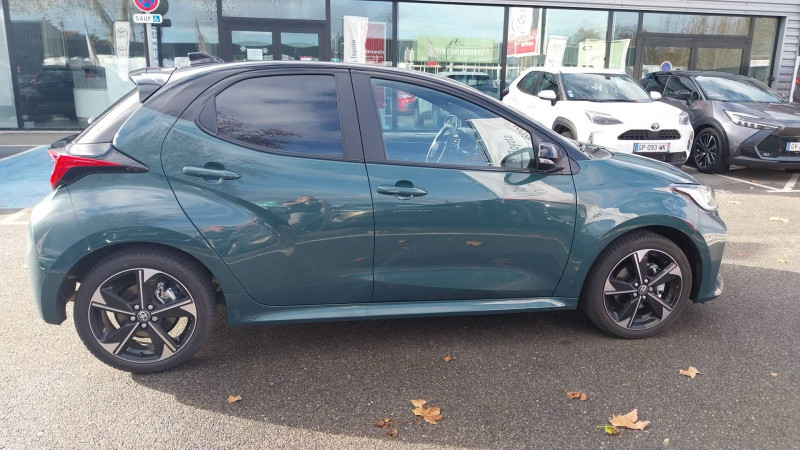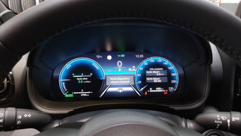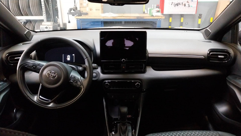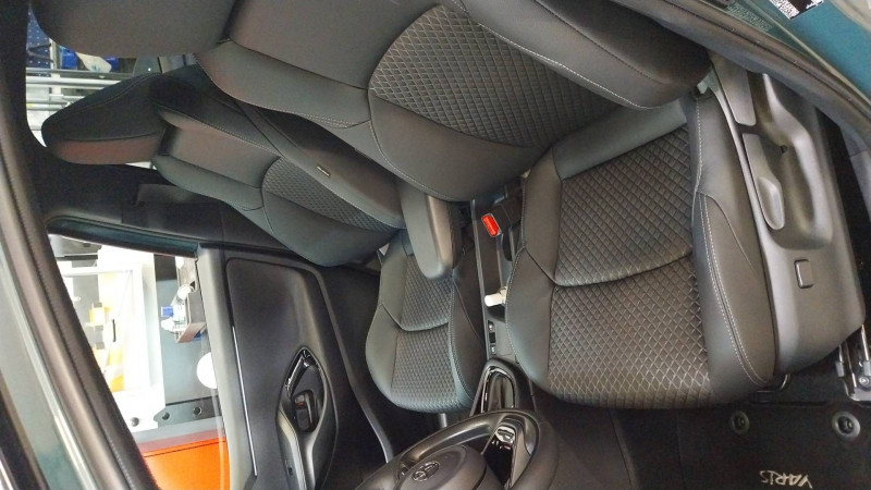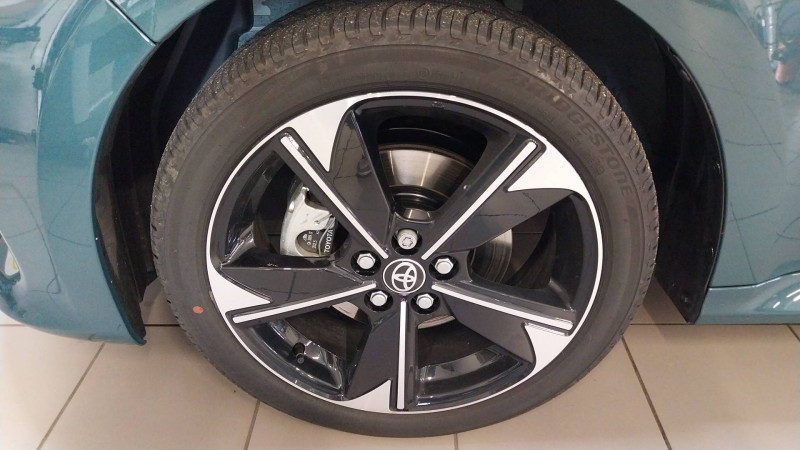 Antenne de toit aileron de requin / Boîte automatique à variation continue / Ciel de toit noir / Clé digitale / Compteur numérique personnalisable 12,3" / Contour de vitres noir laqué / Contrôle de traction (TCS) / Double plancher du coffre / Eclairage d'ambiance intérieur / Electrostabilisateur programmé (ESP) / Feux de croisement à LED / Peinture nacrée bi-ton / Purificateur d'air ionique nanoe X / Rétroviseur intérieur électrochromatique / Sellerie Premium et tissu avec surpiqûres grises / Services connectés de contrôle à distance MyToyota (inclus 4 ans) / Siège conducteur avec support lombaire électrique / Système d'appel d'urgence automatique "E-Call" / Système de connectivité smartphone sans fil Apple CarPlay et Android Auto / Système d'ouverture/fermeture et démarrage sans clé "Smart Entry & Start" / Système multimédia Toyota Smart Connect avec écran tactile 10,5" haute définition, Bluetooth, USB, Radio FM et DAB (digitale), 2 ports USB-C et 6 hp, Services intelligents avec Navigation connectée avec infotrafic en temps réel, mises à jour cartographiques, assistant vocal "Hey Toyota" et recherche de points d'intérêts (inclus 4 ans) / Tableau de bord moussé / Toit noir / Toyota T-MATE / Systemes d'aide à la conduite et au stationnement Avertisseur de circulation AR, Avertisseur d'angles morts, Aide à la sortie sécurisée / Toyota T-MATE / Toyota Safety Sense Système de sécurité précollision avec détection des véhicules, piétons et cyclistes, actif également dans les intersections+Alerte de franchissement de ligne avec aide au maintien dans la file, assistant de trajectoire et détecteur de fatigue+Lecture des panneaux de signalisation avec limiteur de vitesse+Gestion automatique des feux de route+Régulateur de vitesse adaptatif intelligent+Système d'arrêt d'urgence autonome +Système d'assistance à la conduite proactive+Suppression de l'acceleration / Volant chauffant