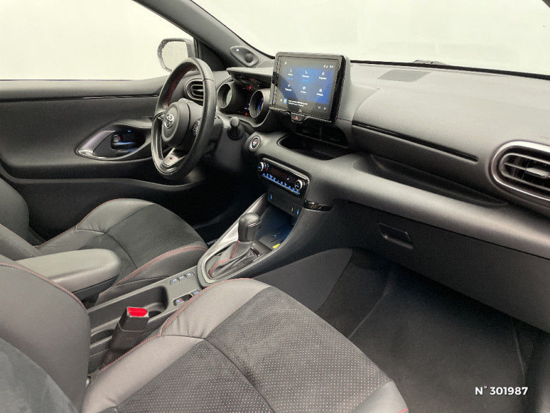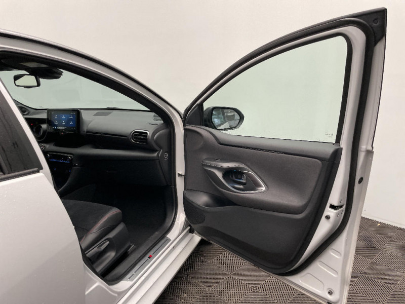 Tableau de bord moussé / Toyota Safety Sense Système de sécurité précollision avec détection des véhicules, piétons et cyclistes, actif également dans les intersections. Alerte de franchissement de ligne avec aide au maintien dans la file, assistant de trajectoire et détecteur de fatigue, Lecture des panneaux de signalisation avec limiteur de vitesse, Gestion automatique des feux de route, Régulateur de vitesse adaptatif intelligent / Toyota Smart Connect avec écran couleur tactile 9" multifonction, 6 HP, navigation connectée et connectivité smartphone sans fil compatible AppleCar Play et Android Auto, et 4 ans de mises à jour cartographiques et de services connectés inclus / Toyota Touch & App compatible avec Apple CarPlay et Android Auto / Toyota Touch: radio digitale (DAB), système de téléphonie Bluetooth et connectique auxiliaire/USB / Volant cuir avec surpiqûres rouges / Antenne de toit aileron de requin / Calandre noir laqué / Ciel de toit noir / Contour de vitres noir / Diffuseur AR / Double plancher du coffre / Eclairage d'ambiance intérieur / Ecran TFT 4,2" / Ecrous antivol / Feux AR à LED (hors clignotants) / Feux AV/AR avec signature lumineuse Full LED / Haut-parleurs x 6 / Jantes alliage 17" Toeda usinées / Peinture bi-ton Gris Chrome/Toit Noir / Peinture Blanc Pur / Purificateur d'air ionique nanoe X / Rétroviseur intérieur électrochromatique / Sellerie mi-cuir Noir - type Sport / Sellerie mi-cuir Noir - type Sport avec surpiqûres rouges / Système d'appel d'urgence automatique "E-Call"