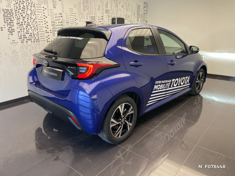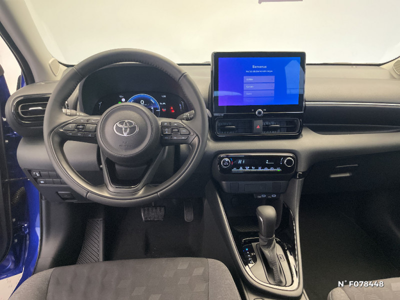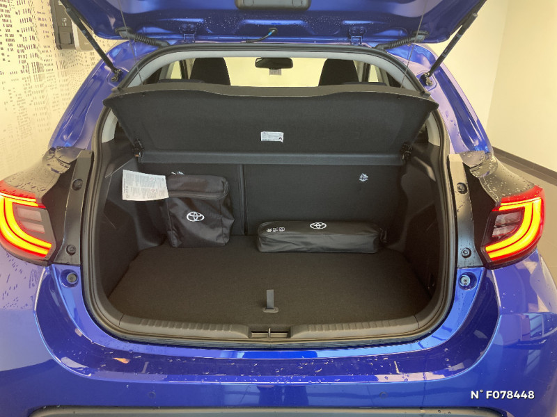 Antenne de toit aileron de requin / Boîte automatique à variation continue / Ciel de toit gris clair / Compteur numérique 7" / Contrôle de traction (TCS) / Double plancher du coffre / Electrostabilisateur programmé (ESP) / Feux de croisement à LED / Rétroviseur intérieur électrochromatique / Rétroviseurs extérieurs couleur carrosserie / Sellerie tissu noir/gris / Services connectés de contrôle à distance MyToyota (inclus 4 ans) / Système d'appel d'urgence automatique "E-Call" / Système de connectivité smartphone sans fil Apple CarPlay et Android Auto / Système d'ouverture/fermeture et démarrage sans clé "Smart Entry & Start" / Système multimédia Toyota Smart Connect avec écran tactile 10,5" haute définition, Bluetooth, USB, Radio FM et DAB (digitale), 2 ports USB-C et 6 hp, Services intelligents avec Navigation connectée avec infotrafic en temps réel, mises à jour cartographiques, assistant vocal "Hey Toyota" et recherche de points d'intérêts (inclus 4 ans) / Tableau de bord moussé / Toyota T-MATE / Toyota Safety Sense Système de sécurité précollision avec détection des véhicules, piétons et cyclistes, actif également dans les intersections+Alerte de franchissement de ligne avec aide au maintien dans la file, assistant de trajectoire et détecteur de fatigue+Lecture des panneaux de signalisation avec limiteur de vitesse+Gestion automatique des feux de route+Régulateur de vitesse adaptatif intelligent+Système d'arrêt d'urgence autonome +Système d'assistance à la conduite proactive+Suppression de l'acceleration