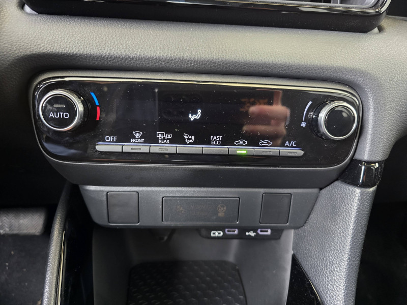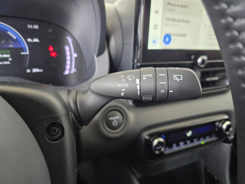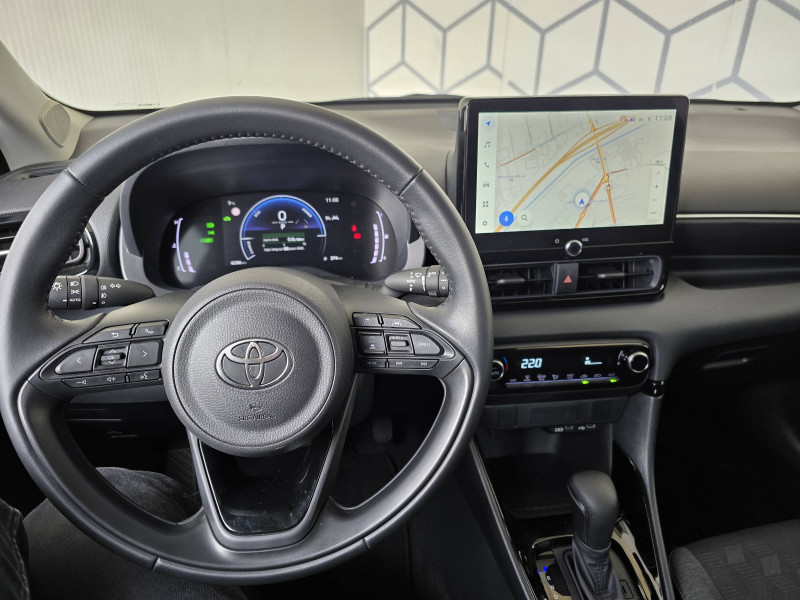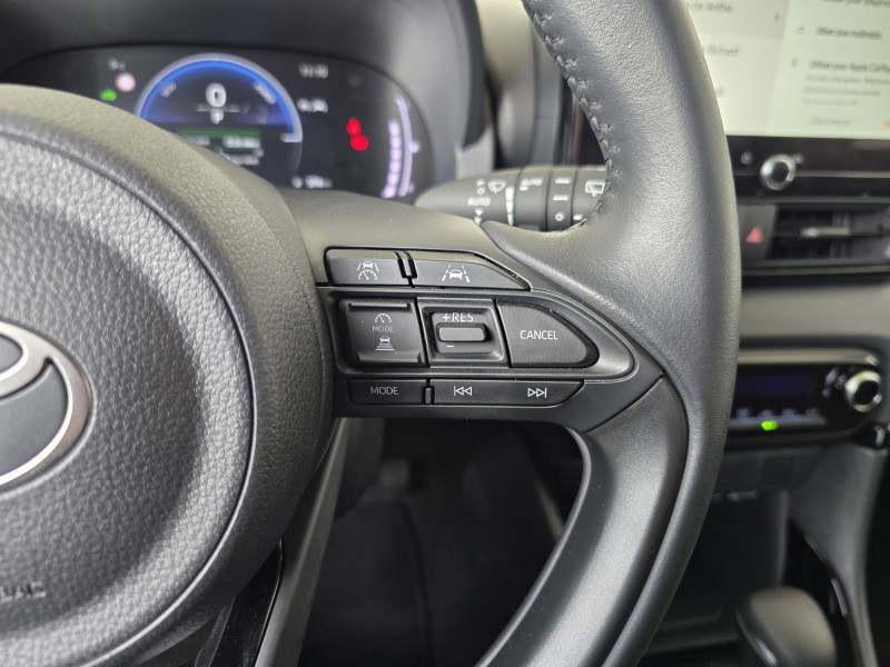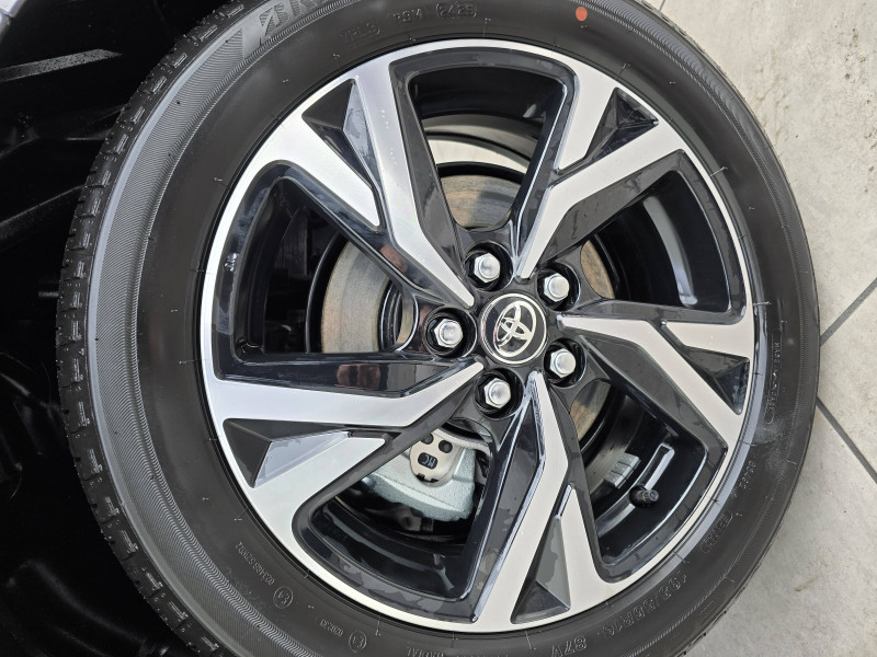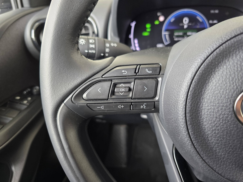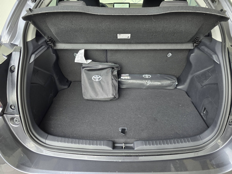 Antenne de toit aileron de requin / Boîte automatique à variation continue / Ciel de toit gris clair / Compteur numérique 7" / Contrôle de traction (TCS) / Double plancher du coffre / Electrostabilisateur programmé (ESP) / Feux de croisement à LED / Rétroviseur intérieur électrochromatique / Rétroviseurs extérieurs couleur carrosserie / Sellerie tissu noir/gris / Services connectés de contrôle à distance MyToyota (inclus 4 ans) / Système d'appel d'urgence automatique "E-Call" / Système de connectivité smartphone sans fil Apple CarPlay et Android Auto / Système d'ouverture/fermeture et démarrage sans clé "Smart Entry & Start" / Système multimédia Toyota Smart Connect avec écran tactile 10,5" haute définition, Bluetooth, USB, Radio FM et DAB (digitale), 2 ports USB-C et 6 hp, Services intelligents avec Navigation connectée avec infotrafic en temps réel, mises à jour cartographiques, assistant vocal "Hey Toyota" et recherche de points d'intérêts (inclus 4 ans) / Tableau de bord moussé / Toyota T-MATE / Toyota Safety Sense Système de sécurité précollision avec détection des véhicules, piétons et cyclistes, actif également dans les intersections+Alerte de franchissement de ligne avec aide au maintien dans la file, assistant de trajectoire et détecteur de fatigue+Lecture des panneaux de signalisation avec limiteur de vitesse+Gestion automatique des feux de route+Régulateur de vitesse adaptatif intelligent+Système d'arrêt d'urgence autonome +Système d'assistance à la conduite proactive+Suppression de l'acceleration