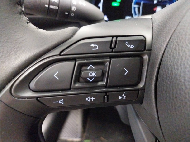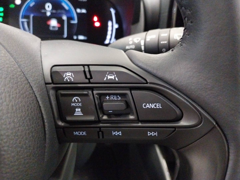 Antenne de toit aileron de requin / Boîte automatique à variation continue / Ciel de toit gris clair / Compteur numérique 7" / Contrôle de traction (TCS) / Double plancher du coffre / Electrostabilisateur programmé (ESP) / Feux de croisement à LED / Rétroviseur intérieur électrochromatique / Rétroviseurs extérieurs couleur carrosserie / Sellerie tissu noir/gris / Services connectés de contrôle à distance MyToyota (inclus 4 ans) / Système d'appel d'urgence automatique "E-Call" / Système de connectivité smartphone sans fil Apple CarPlay et Android Auto / Système d'ouverture/fermeture et démarrage sans clé "Smart Entry & Start" / Système multimédia Toyota Smart Connect avec écran tactile 10,5" haute définition, Bluetooth, USB, Radio FM et DAB (digitale), 2 ports USB-C et 6 hp, Services intelligents avec Navigation connectée avec infotrafic en temps réel, mises à jour cartographiques, assistant vocal "Hey Toyota" et recherche de points d'intérêts (inclus 4 ans) / Tableau de bord moussé / Toyota T-MATE / Toyota Safety Sense Système de sécurité précollision avec détection des véhicules, piétons et cyclistes, actif également dans les intersections+Alerte de franchissement de ligne avec aide au maintien dans la file, assistant de trajectoire et détecteur de fatigue+Lecture des panneaux de signalisation avec limiteur de vitesse+Gestion automatique des feux de route+Régulateur de vitesse adaptatif intelligent+Système d'arrêt d'urgence autonome +Système d'assistance à la conduite proactive+Suppression de l'acceleration
