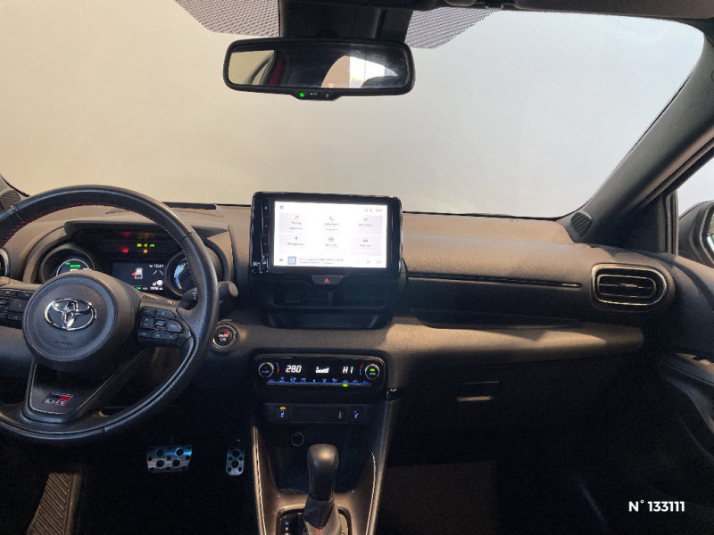 Peinture bi-ton Gris Chrome/Toit Noir / Peinture Blanc Pur / Purificateur d'air ionique nanoe X / Rétroviseur intérieur électrochromatique / Sellerie mi-cuir Noir - type Sport / Sellerie mi-cuir Noir - type Sport avec surpiqûres rouges / Système d'appel d'urgence automatique "E-Call" / Tableau de bord moussé / Toyota Touch: radio digitale (DAB), système de téléphonie Bluetooth et connectique auxiliaire/USB / Volant cuir avec surpiqûres rouges / Toyota Touch & App compatible avec Apple CarPlay et Android Auto / Antenne de toit aileron de requin / Calandre noir laqué / Ciel de toit noir / Contour de vitres noir / Diffuseur AR / Double plancher du coffre / Eclairage d'ambiance intérieur / Ecran TFT 4,2" / Ecrous antivol / Feux AR à LED (hors clignotants) / Feux AV/AR avec signature lumineuse Full LED / Haut-parleurs x 6 / Jantes alliage 17" Toeda usinées / Toyota Safety Sense Système de sécurité précollision avec détection des véhicules, piétons et cyclistes, actif également dans les intersections. Alerte de franchissement de ligne avec aide au maintien dans la file, assistant de trajectoire et détecteur de fatigue, Lecture des panneaux de signalisation avec limiteur de vitesse, Gestion automatique des feux de route, Régulateur de vitesse adaptatif intelligent / Toyota Smart Connect avec écran couleur tactile 9" multifonction, 6 HP, navigation connectée et connectivité smartphone sans fil compatible AppleCar Play et Android Auto, et 4 ans de mises à jour cartographiques et de services connectés inclus