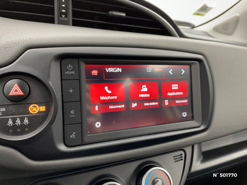 7 Airbags (frontaux, lateraux, rideaux et un protège-genoux conducteur) / Ordinateur de bord avec écran TFT couleur 4.2" multifonctions / Kit de réparation anti-crevaison / Indicateur de perte de pression des pneus / Enjoliveurs 15" Kaori / Double plancher du coffre / Système de connectivité smartphone Toyota Touch & App