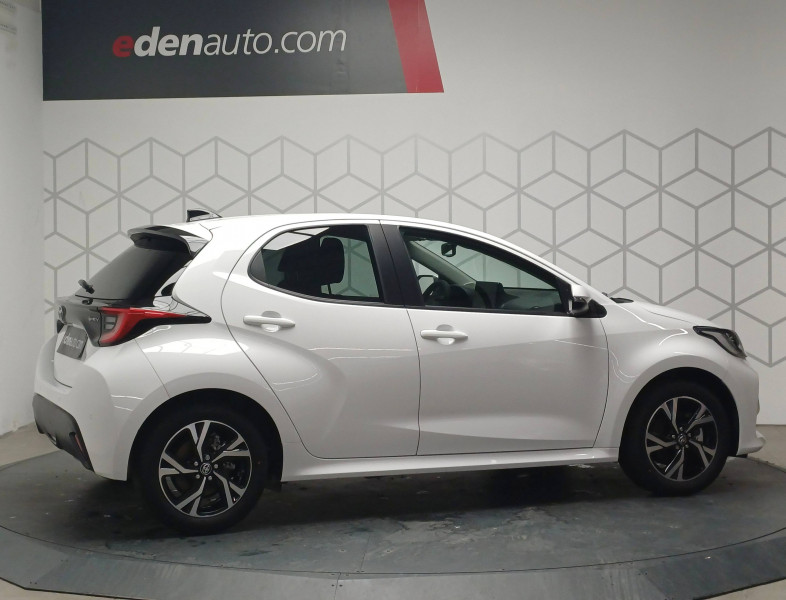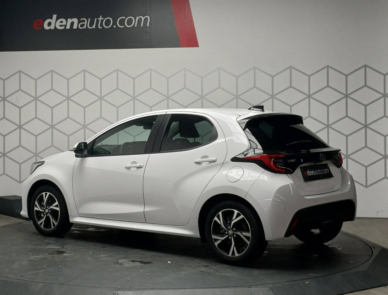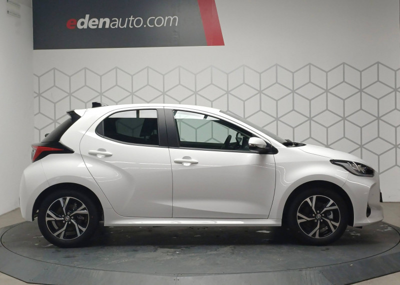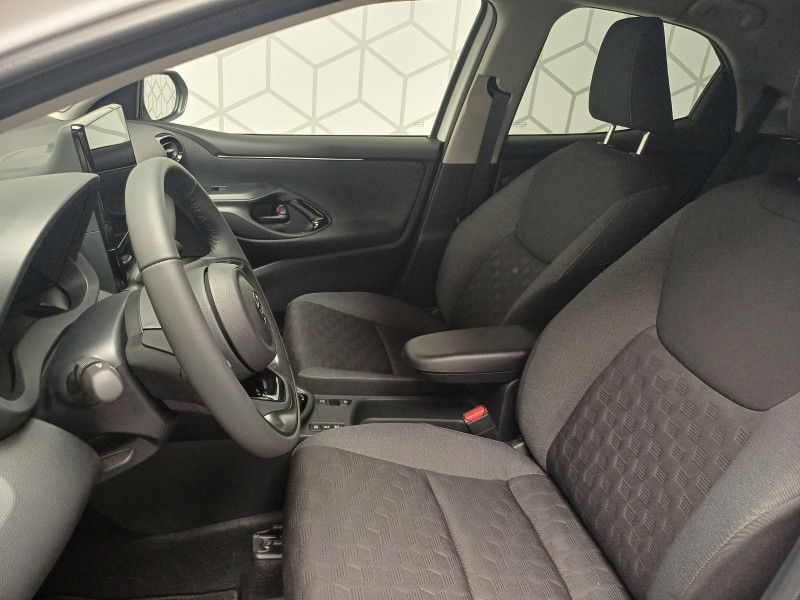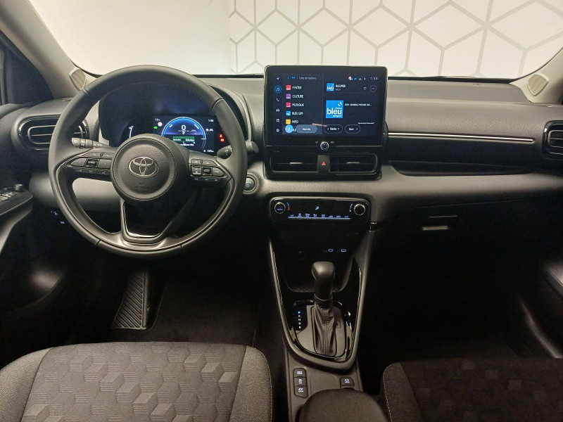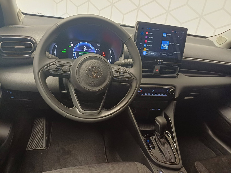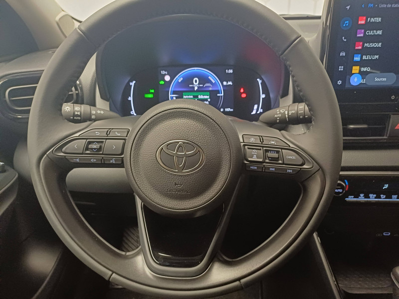 Antenne de toit aileron de requin / Assistant visuel de conduite (DMC) / Boîte automatique à variation continue / Ciel de toit gris clair / Compteur numérique 7" / Contrôle de traction (TCS) / Double plancher du coffre / Eclairage d'ambiance intérieur / Electrostabilisateur programmé (ESP) / Feux de croisement à LED / Rétroviseur intérieur électrochromatique / Rétroviseurs extérieurs couleur carrosserie / Sellerie tissu noir/gris / Services connectés de contrôle à distance MyToyota (inclus 4 ans) / Services connectés standards MyToyota (inclus 10 ans) / Système d'appel d'urgence automatique "E-Call" / Système de connectivité smartphone sans fil Apple CarPlay et Android Auto / Système d'ouverture/fermeture et démarrage sans clé "Smart Entry & Start" / Système multimédia Toyota Smart Connect avec écran tactile 10,5" haute définition, Bluetooth, USB, Radio FM et DAB (digitale), 2 ports USB-C et 6 hp, Services intelligents avec Navigation connectée avec infotrafic en temps réel, mises à jour cartographiques, assistant vocal "Hey Toyota" et recherche de points d'intérêts (inclus 4 ans) / Tableau de bord moussé / Toyota T-MATE / Toyota Safety Sense Système de sécurité précollision avec détection des véhicules, piétons et cyclistes, actif également dans les intersections+Alerte de franchissement de ligne avec aide au maintien dans la file, assistant de trajectoire et détecteur de fatigue+Lecture des panneaux de signalisation avec limiteur de vitesse+Gestion automatique des feux de route+Régulateur de vitesse adaptatif intelligent+Système d'arrêt d'urgence autonome +Système d'assistance à la conduite proactive+Suppression de l'acceleration