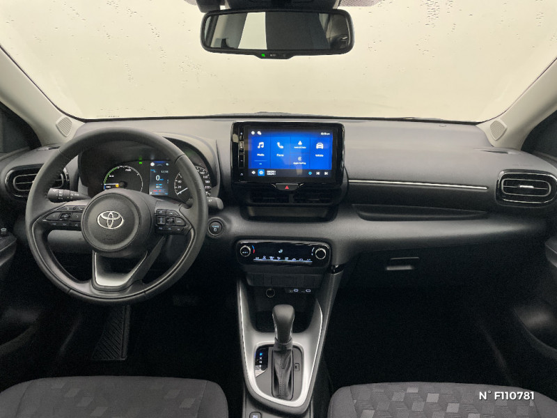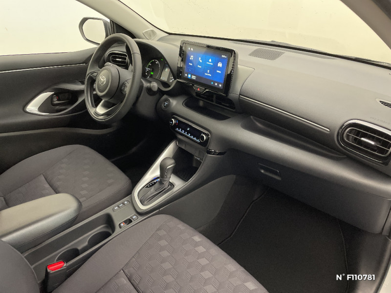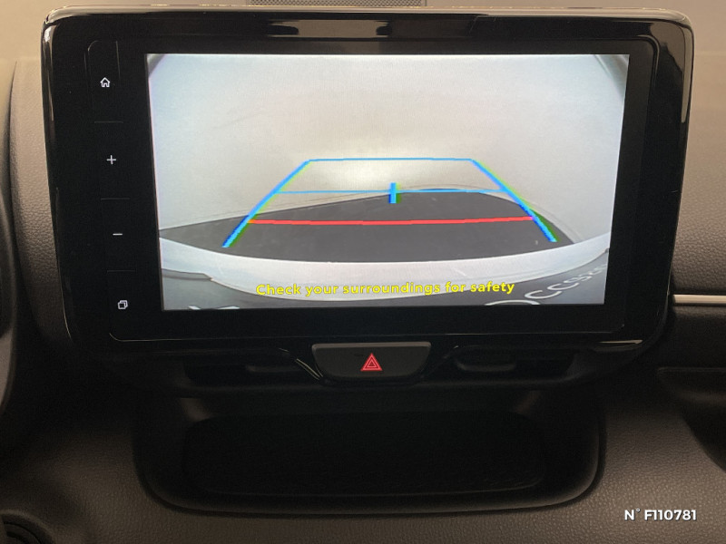 Antenne de toit aileron de requin / Assistant visuel de conduite (DMC) / Boîte automatique à variation continue / Ciel de toit gris clair / Contrôle de traction (TCS) / Double plancher du coffre / Electrostabilisateur programmé (ESP) / Enjoliveurs 15" / Feux de route halogènes / Rétroviseur intérieur électrochromatique / Rétroviseurs extérieurs couleur carrosserie / Services connectés standards MyToyota (inclus 10 ans) / Système d'appel d'urgence automatique "E-Call" / Système de connectivité smartphone sans fil Apple CarPlay et Android Auto / Système d'ouverture/fermeture et démarrage sans clé "Smart Entry & Start" / Système multimédia Toyota Touch 3 - Ecran couleur tactile 9" haute définition - Bluetooth, USB, Radio FM et DAB (digitale) - 2 ports USB-C et 6 haut-parleurs / Tableau de bord moussé / Toyota T-MATE / Toyota Safety Sense Système de sécurité précollision avec détection des véhicules, piétons et cyclistes, actif également dans les intersections+Alerte de franchissement de ligne avec aide au maintien dans la file, assistant de trajectoire et détecteur de fatigue+Lecture des panneaux de signalisation avec limiteur de vitesse+Gestion automatique des feux de route+Régulateur de vitesse adaptatif intelligent+Système d'arrêt d'urgence autonome +Système d'assistance à la conduite proactive+Suppression de l'acceleration