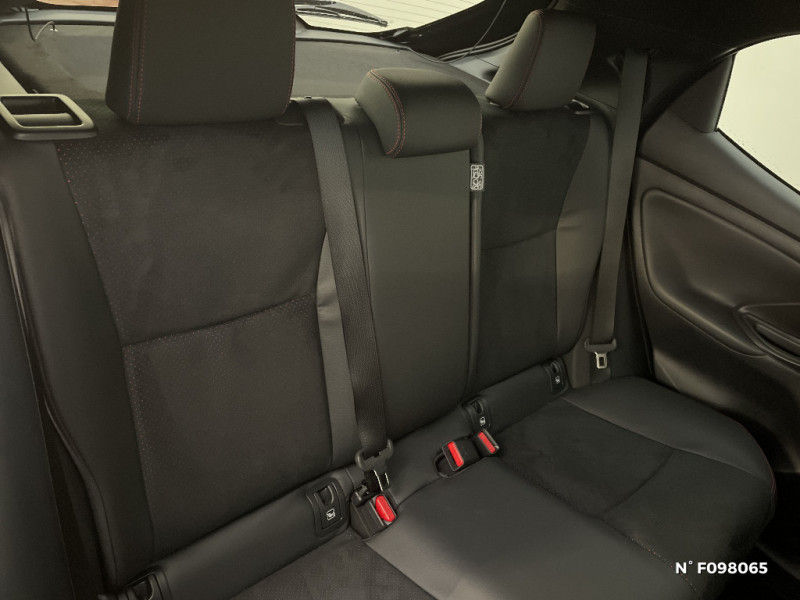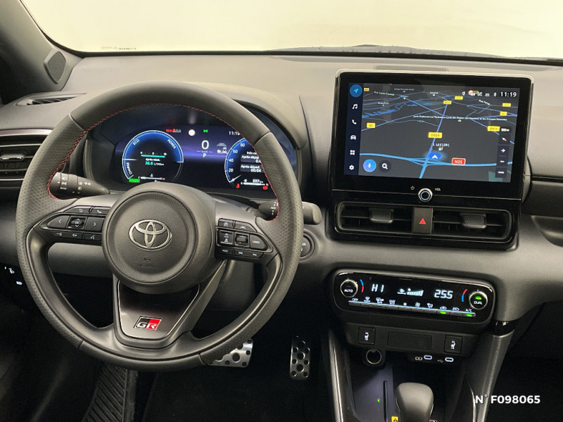 Double plancher du coffre / Eclairage d'ambiance intérieur / Electrostabilisateur programmé (ESP) / Feux de croisement à LED / Insert inférieur de calandre noir / Logo GR SPORT sur le volant / Pédalier en aluminium / Peinture premium bi-ton / Purificateur d'air ionique nanoe X / Rétroviseur intérieur électrochromatique / Sellerie Premium et suédine noire perforée rouge, avec surpiqûres rouges et logo GR SPORT embossé / Services connectés de contrôle à distance MyToyota (inclus 4 ans) / Services connectés standards MyToyota (inclus 10 ans) / Suspensions raffermies / Système d'appel d'urgence automatique "E-Call" / Système de connectivité smartphone sans fil Apple CarPlay et Android Auto / Système d'ouverture/fermeture et démarrage sans clé "Smart Entry & Start" / Système multimédia Toyota Smart Connect avec écran tactile 10,5" haute définition, Bluetooth, USB, Radio FM et DAB (digitale), 2 ports USB-C et 6 hp, Services intelligents avec Navigation connectée avec infotrafic en temps réel, mises à jour cartographiques, assistant vocal "Hey Toyota" et recherche de points d¿intérêts (inclus 4 ans) / Tableau de bord moussé / Toit noir / Toyota T-MATE / Systemes d'aide à la conduite et au stationnement Avertisseur de circulation AR, Avertisseur d'angles morts, Aide à la sortie sécurisée / Toyota T-MATE / Toyota Safety Sense Système de sécurité précollision avec détection des véhicules, piétons et cyclistes, actif également dans les intersections+Alerte de franchissement de ligne avec aide au maintien dans la file, assistant de trajectoire et détecteur de fatigue+Lecture des panneaux de signalisation avec limiteur de vitesse+Gestion automatique des feux de route+Régulateur de vitesse adaptatif intelligent+Système d'arrêt d'urgence autonome +Système d'assistance à la conduite proactive+Suppression de l'acceleration / Volant chauffant / Volant cuir avec surpiqûres rouges / Siège conducteur avec support lombaire électrique / Antenne de toit aileron de requin / Assistant visuel de conduite (DMC) / Boîte automatique à variation continue / Calandre AV spécifique GR Sport / Ciel de toit noir / Clé digitale / Compteur numérique personnalisable 12,3" / Contour de vitres noir laqué / Contrôle de traction (TCS) / Diffuseur AR