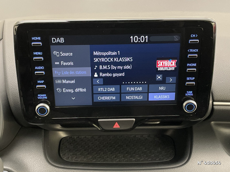 Feux AR à LED (hors clignotants) / Haut-parleurs x 4 / Peinture Blanc Pur / Rétroviseur intérieur électrochromatique / Rétroviseurs extérieurs couleur carrosserie / Système d'appel d'urgence automatique "E-Call" / Tableau de bord moussé / Toyota Safety Sense Système de sécurité précollision avec détection des véhicules, piétons et cyclistes, actif également dans les intersections. Alerte de franchissement de ligne avec aide au maintien dans la file, assistant de trajectoire et détecteur de fatigue, Lecture des panneaux de signalisation avec limiteur de vitesse, Gestion automatique des feux de route, Régulateur de vitesse adaptatif intelligent / Toyota Touch & App compatible avec Apple CarPlay et Android Auto / Toyota Touch: radio digitale (DAB), système de téléphonie Bluetooth et connectique auxiliaire/USB / Antenne de toit aileron de requin / Ciel de toit gris clair / Double plancher du coffre / Ecran TFT 4,2" / Feux AV/AR avec signature lumineuse Full LED