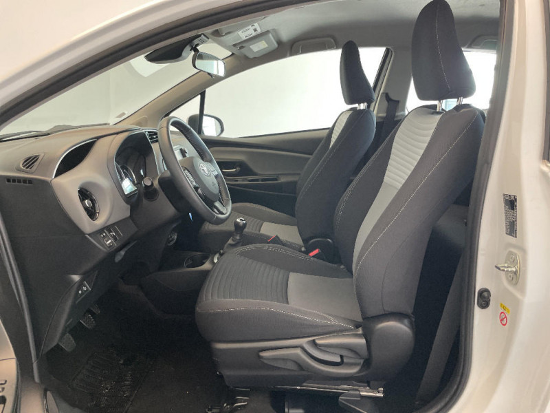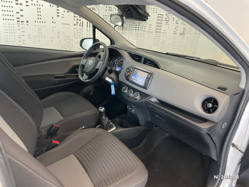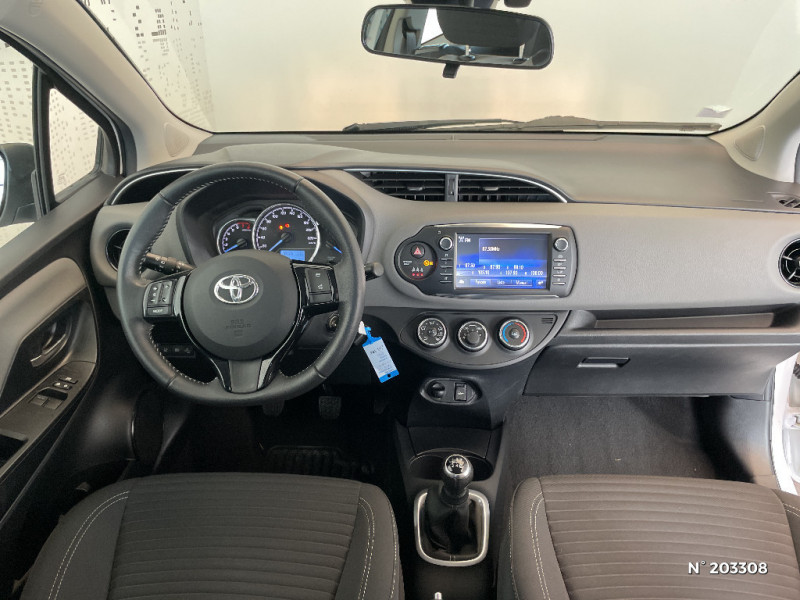 Pommeau de levier de vitesse gainé cuir / Sellerie tissu Mirabeau / Système audio CD compatible MP3 / WMA / Système audio CD compatible MP3 / WMA et 6 HP / Système de contrôle de stabilité (VSC) + Système de contrôle de motricité (TRC) / Système de téléphonie Bluetooth / Tapis de sol en velours / Toyota Safety Sense Alerte active de franchissement de ligne, Allumage automatique des phares, freinage d'urgence anticollision / Toyota Safety Sense Système de sécurité précollision avec détection des piétons, Alerte de franchissement de ligne et détecteur de fatigue, gestion automatique des feux de route, lecture des panneaux de signalisation, régulateur de vitesse adaptatif. / Toyota Touch 2 / Volant avec insert noir brillant / 7 Airbags (frontaux, lateraux, rideaux et un protège-genoux conducteur) / Fermeture centralisée des portes avec télécommande / Finition chrome satiné (aérateurs, HP, commandes de climatisation, entourage de levier de vitesses, inserts Toyota Touch 2) / Finition intérieure chrome satiné / Follow me home (feux AV à extinction différée) / Indicateur de perte de pression des pneus / Kit de réparation anti-crevaison / ABS, EBD et BA / Baguette de coffre couleur carrosserie / Calandre inférieure avec entourage chromé / Calandre inférieure Noire mate / Calandre supérieure avec insert chromé / Carrosserie monoton / Compte-tours / Diffuseur AR Noir / Double plancher du coffre / Enjoliveurs 15" Kaori / Ouverture/fermeture centralisée à distance / Peinture Blanc Pur / Phares halogènes avec feux de jour / Planche de bord "Soft touch" / Poignées de portes et rétroviseurs extérieurs couleur carrosserie