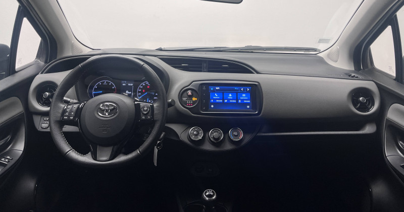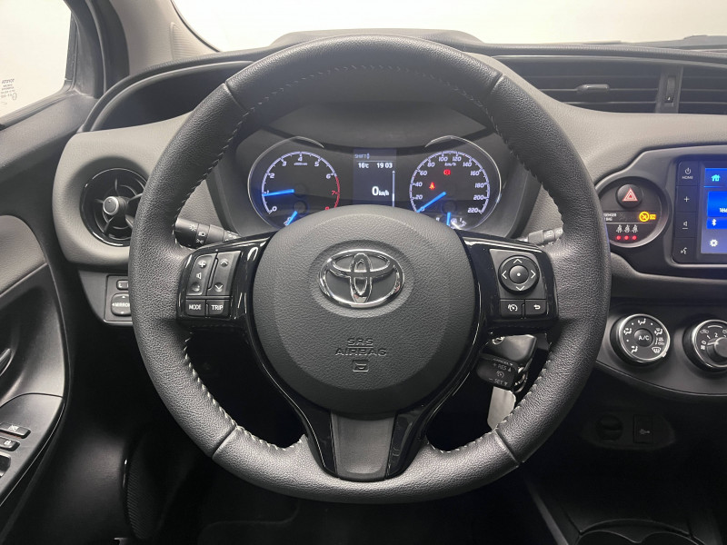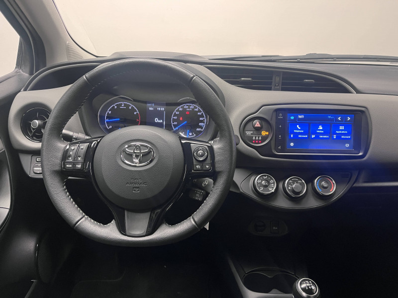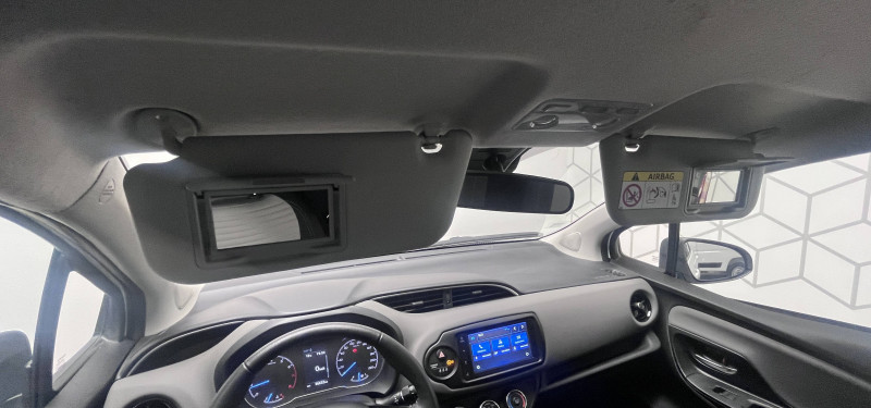 7 Airbags (frontaux, lateraux, rideaux et un protège-genoux conducteur) / Badge AR "France Connect" / Ciel de toit gris clair / Double plancher du coffre / Enjoliveurs 15" Kaori / Follow me home (feux AV à extinction différée) / Indicateur de perte de pression des pneus / Kit de réparation anti-crevaison / Ordinateur de bord avec écran TFT couleur 4.2" multifonctions / Ouverture/fermeture centralisée à distance / Phares halogènes avec feux de jour / Planche de bord "Soft touch" / Poignées de portes et rétroviseurs extérieurs couleur carrosserie / Pommeau de levier de vitesse gainé cuir / Système de connectivité smartphone Toyota Touch & App / Toyota Safety Sense Système de sécurité précollision avec détection des piétons, Alerte de franchissement de ligne et détecteur de fatigue, gestion automatique des feux de route, lecture des panneaux de signalisation, régulateur de vitesse adaptatif.