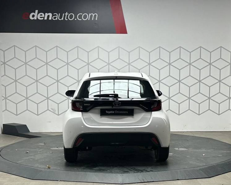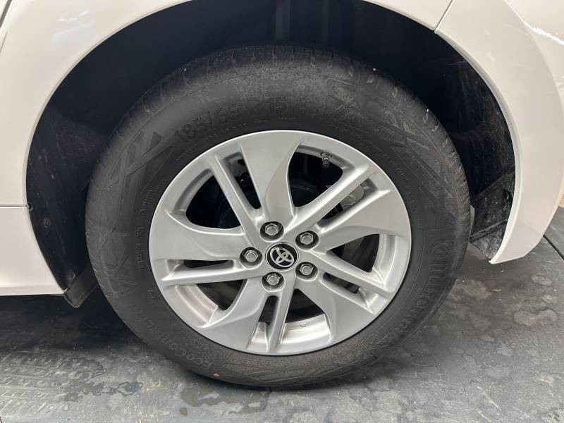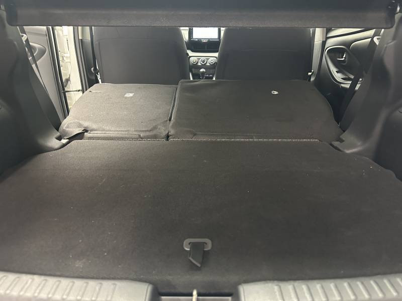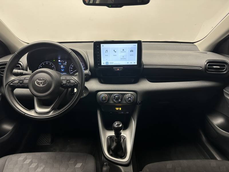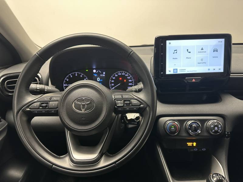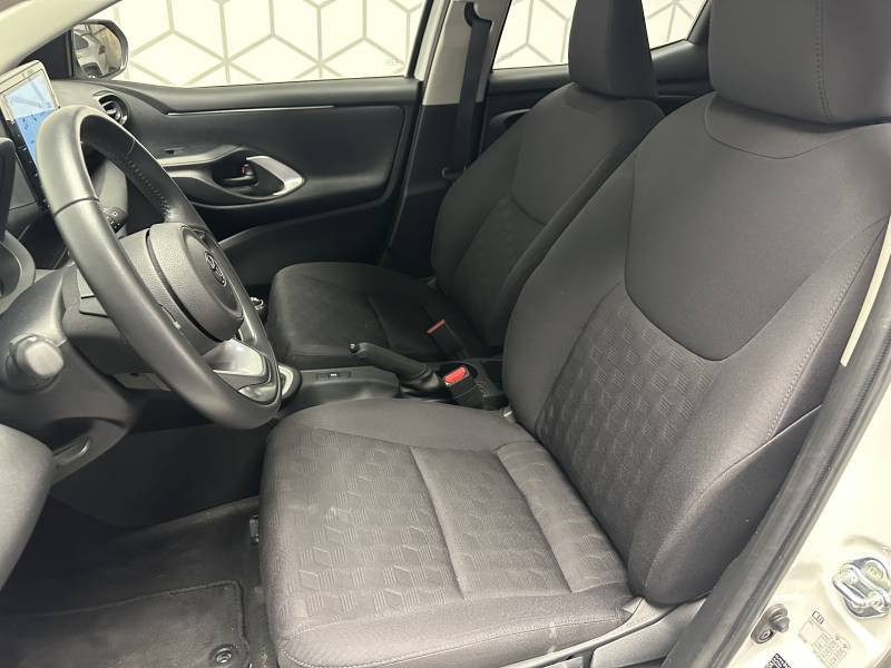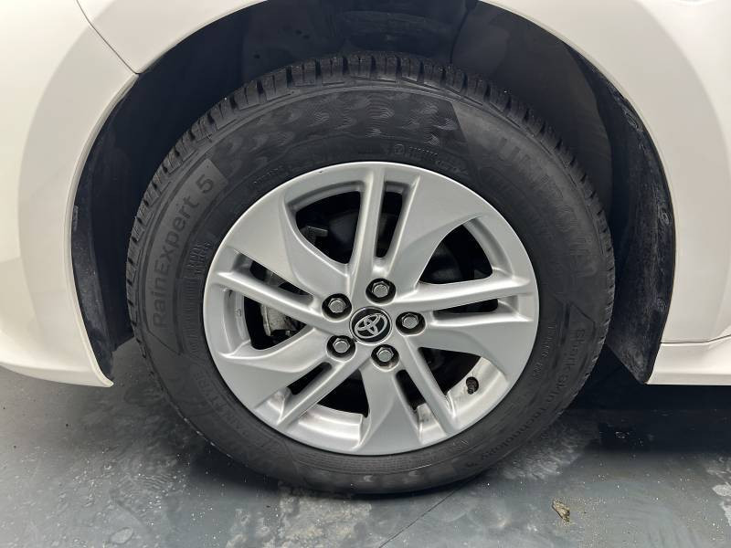 Antenne de toit aileron de requin / Ciel de toit gris clair / Double plancher du coffre / Ecran couleur tactile multifonction 7" / Enjoliveurs 15" / Feux AR à LED (hors clignotants) / Feux de route halogènes / Haut-parleurs x 4 / Rétroviseurs extérieurs couleur carrosserie / Système d'appel d'urgence automatique "E-Call" / Tableau de bord moussé / Toyota Safety Sense Système de sécurité précollision avec détection des véhicules, piétons et cyclistes, actif également dans les intersections. Alerte de franchissement de ligne avec aide au maintien dans la file, assistant de trajectoire et détecteur de fatigue, Lecture des panneaux de signalisation avec limiteur de vitesse, Gestion automatique des feux de route, Régulateur de vitesse adaptatif intelligent / Toyota Touch & App compatible avec Apple CarPlay et Android Auto / Toyota Touch & Go : système de navigation 3D à écran couleur tactile avec reconnaissance vocale et 3 ans de mises à jour cartographiques et de services connectés inclus / Toyota Touch: radio digitale (DAB), système de téléphonie Bluetooth et connectique auxiliaire/USB