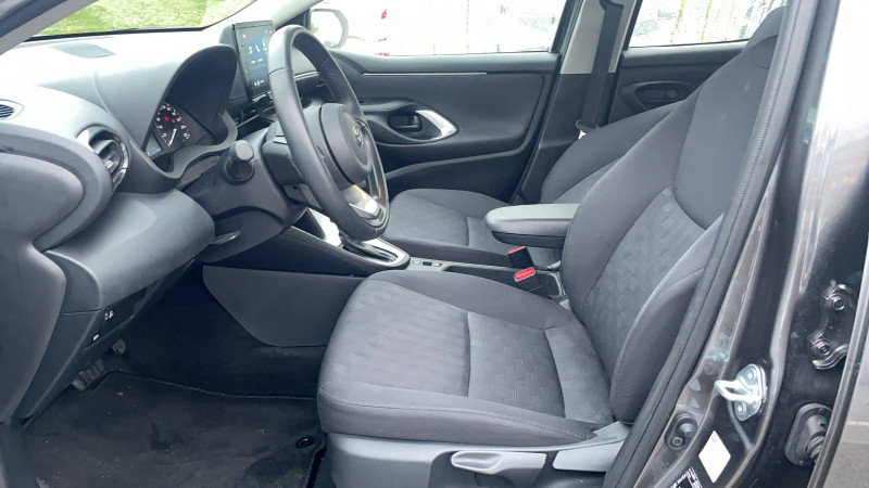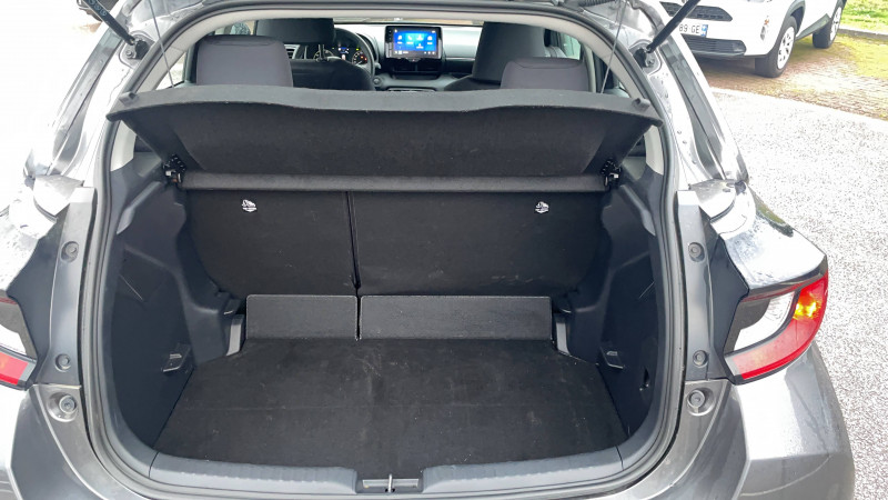 Antenne de toit aileron de requin / Ciel de toit gris clair / Compteur numérique 7" / Double plancher du coffre / Feux de croisement à LED / Rétroviseur intérieur électrochromatique / Rétroviseurs extérieurs couleur carrosserie / Sellerie tissu noir/gris / Services connectés de contrôle à distance MyToyota (inclus 4 ans) / Système d'appel d'urgence automatique "E-Call" / Système de connectivité smartphone sans fil Apple CarPlay et Android Auto / Système d'ouverture/fermeture et démarrage sans clé "Smart Entry & Start" / Système multimédia Toyota Smart Connect avec écran tactile 10,5" haute définition, Bluetooth, USB, Radio FM et DAB (digitale), 2 ports USB-C et 6 hp, Services intelligents avec Navigation connectée avec infotrafic en temps réel, mises à jour cartographiques, assistant vocal "Hey Toyota" et recherche de points d'intérêts (inclus 4 ans) / Tableau de bord moussé / Toyota T-MATE / Toyota Safety Sense Système de sécurité précollision avec détection des véhicules, piétons et cyclistes, actif également dans les intersections+Alerte de franchissement de ligne avec aide au maintien dans la file, assistant de trajectoire et détecteur de fatigue+Lecture des panneaux de signalisation avec limiteur de vitesse+Gestion automatique des feux de route+Régulateur de vitesse adaptatif intelligent+Système d'arrêt d'urgence autonome +Système d'assistance à la conduite proactive+Suppression de l'acceleration