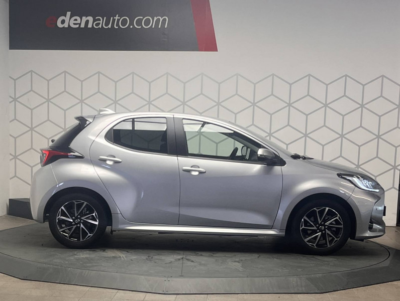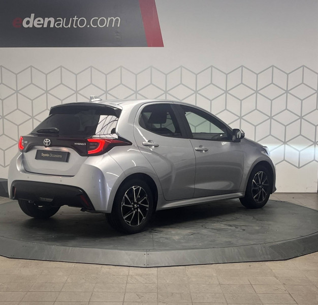 Antenne de toit aileron de requin / Calandre chromée / Ciel de toit gris clair / Contour de vitres chromé / Double plancher du coffre / Eclairage d'ambiance intérieur / Ecran TFT 4,2" / Feux AR à LED (hors clignotants) / Haut-parleurs x 6 / Jantes alliage 17" Sakura usinées / Purificateur d'air ionique nanoe X / Réglage lombaire / Rétroviseur intérieur électrochromatique / Rétroviseurs extérieurs couleur carrosserie / Sellerie Cuir Noir - type Sport / Système d'appel d'urgence automatique "E-Call" / Tableau de bord moussé / Toyota Safety Sense Système de sécurité précollision avec détection des véhicules, piétons et cyclistes, actif également dans les intersections. Alerte de franchissement de ligne avec aide au maintien dans la file, assistant de trajectoire et détecteur de fatigue, Lecture des panneaux de signalisation avec limiteur de vitesse, Gestion automatique des feux de route, Régulateur de vitesse adaptatif intelligent / Toyota Smart Connect avec écran couleur tactile 9" multifonction, 6 HP, navigation connectée et connectivité smartphone sans fil compatible AppleCar Play et Android Auto, et 4 ans de mises à jour cartographiques et de services connectés inclus
