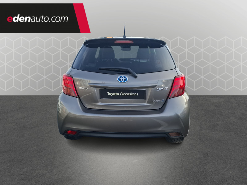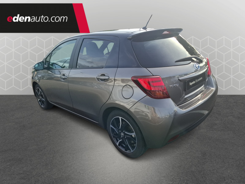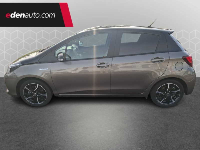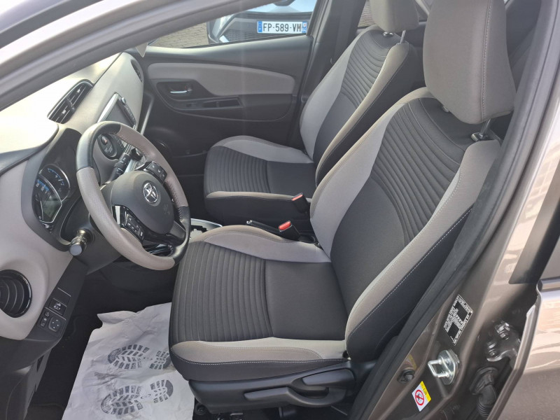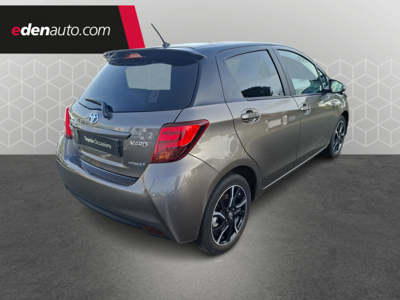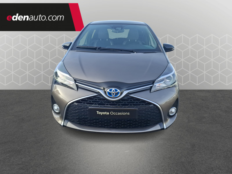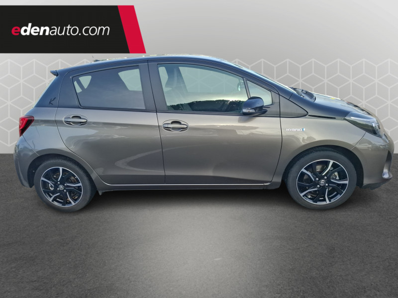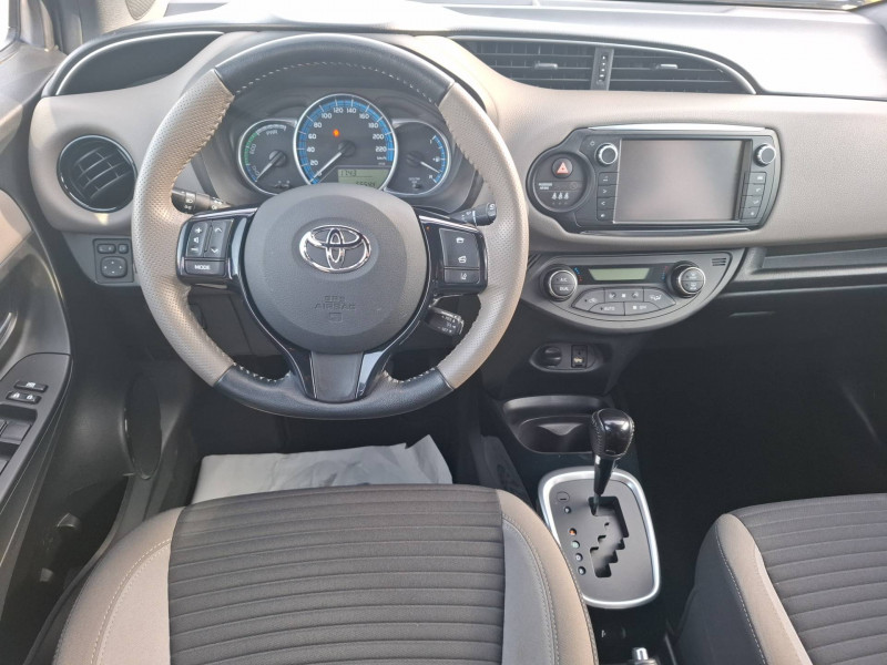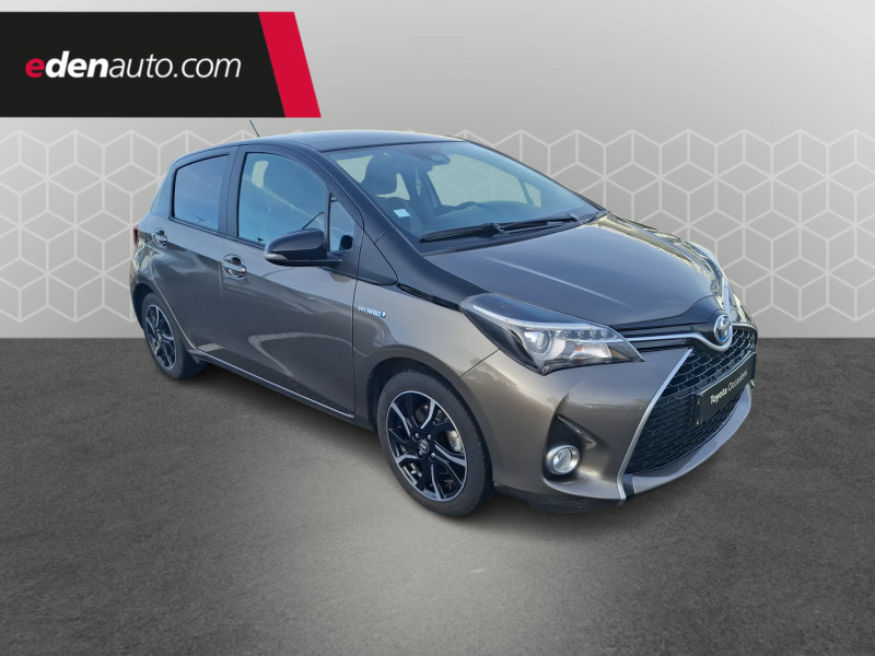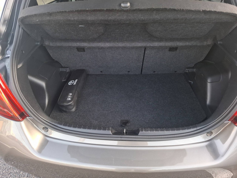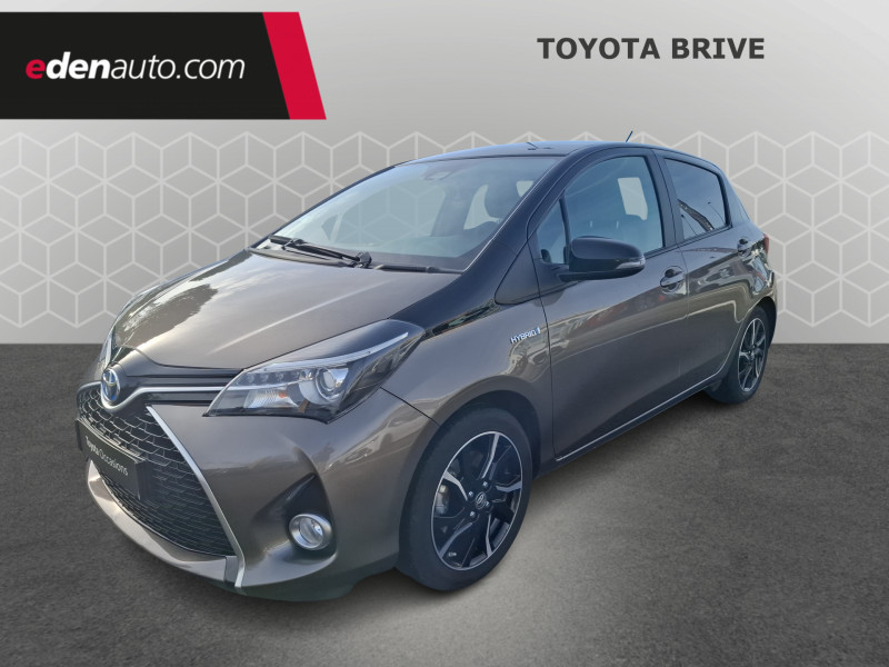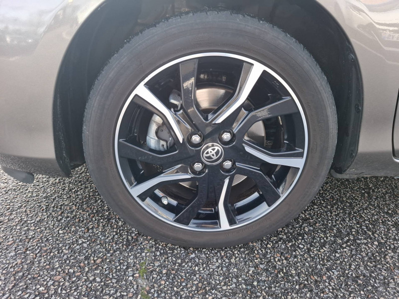 7 Airbags (frontaux, lateraux, rideaux et un protège-genoux conducteur) / ABS, EBD et BA / Accoudoir AV pour le conducteur / Aumônière de siège côté passager / Baguette de coffre couleur carrosserie / Becquet AR de hayon / Boîte automatique E-CVT / Calandre en nid d'abeilles Noire laquée avec entourage Chrome satiné / Cerclages des aérateurs et branches volant Noirs laqués / Ciel de toit noir / Diffuseur AR Noir / Double plancher du coffre / Fermeture centralisée des portes avec télécommande / Finition Chrome satiné (haut-parleurs, commandes de climatisation, entourage de levier de vitesses et inserts Toyota Touch 2) / Finition laquée Noire (volant, cerclages aérateurs et console centrale) / Follow me home (feux AV à extinction différée) / Frein AR à disques / Indicateur de perte de pression des pneus / Kit de réparation anti-crevaison / Planche de bord "Soft touch" Gris foncé / Poignées de portes extérieurs couleur carroserie / Projecteurs halogènes avec feux de jour à LED / Rétroviseur intérieur électrochromatique / Rétroviseurs extérieurs Noirs métallisé / Sellerie tissu Noire 3D avec surpiqûres Grises Pyramides / Système de contrôle de stabilité (VSC) + Système de contrôle de motricité (TRC) / Système Toyota Touch 2 (écran tactile 7", système de téléphonie Bluetooth, compatibilité iPod) / Toit et montants Noirs métallisés / Volant cuir perforé et branches noires laquées