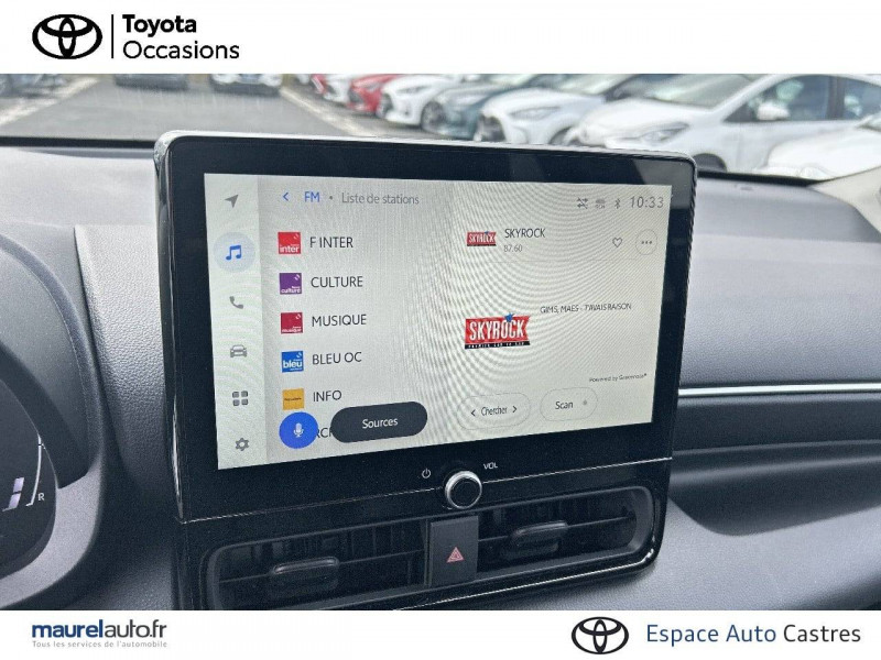 Feux AR à LED (hors clignotants) / Feux de croisement à LED / Système d'appel d'urgence automatique "E-Call" / Système multimédia Toyota Smart Connect avec Ecran tactile 10,5", Navigation connectée avec radio digitale DAB, Bluetoot, 2 ports USB-C, infotrafic en temps réel, Smart Parking (aide à la recherche de stationnement), Connectivité smartphone sans fil, Assistant vocal HEY TOYOTA, 4 ans de mises à jour cartographiques et services connectés inclus / Toyota Safety Sense 3 Alerte de franchissement de ligne avec aide au maintien dans la file et assistant de trajectoire et détecteur de fatigue (LDA), Gestion automatique des feux de route (AHB), Lecture des panneaux de signalisation de route (RSA), Régulateur de vitesse adaptatif (ACC) / 6 HP / Antenne de toit aileron de requin / Double plancher du coffre / Ecran TFT 7" / Rétroviseur intérieur électrochromatique / Services connectés MyT avec contrôle à distance (Verrouillage et déverrouillage des portes, localiser mon véhicule (feux clignotants) et commande à distance de température) / Système d'ouverture/fermeture et démarrage sans clé "Smart Entry & Start"